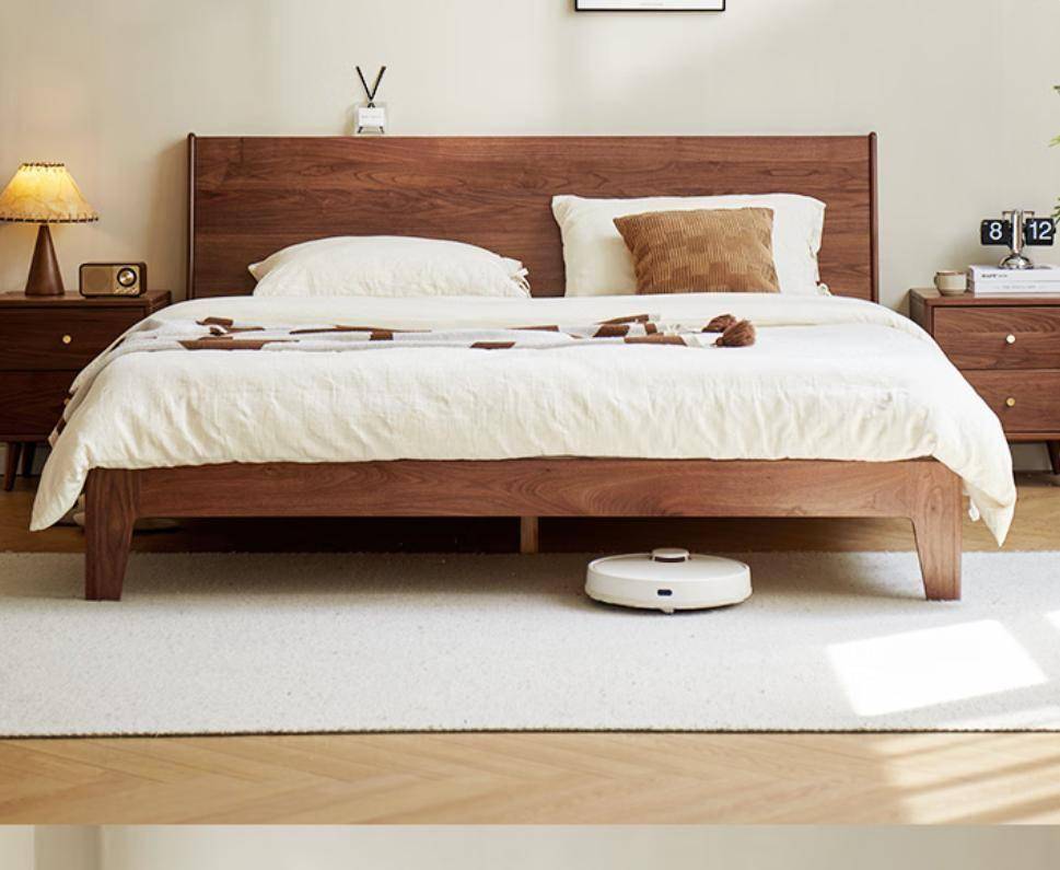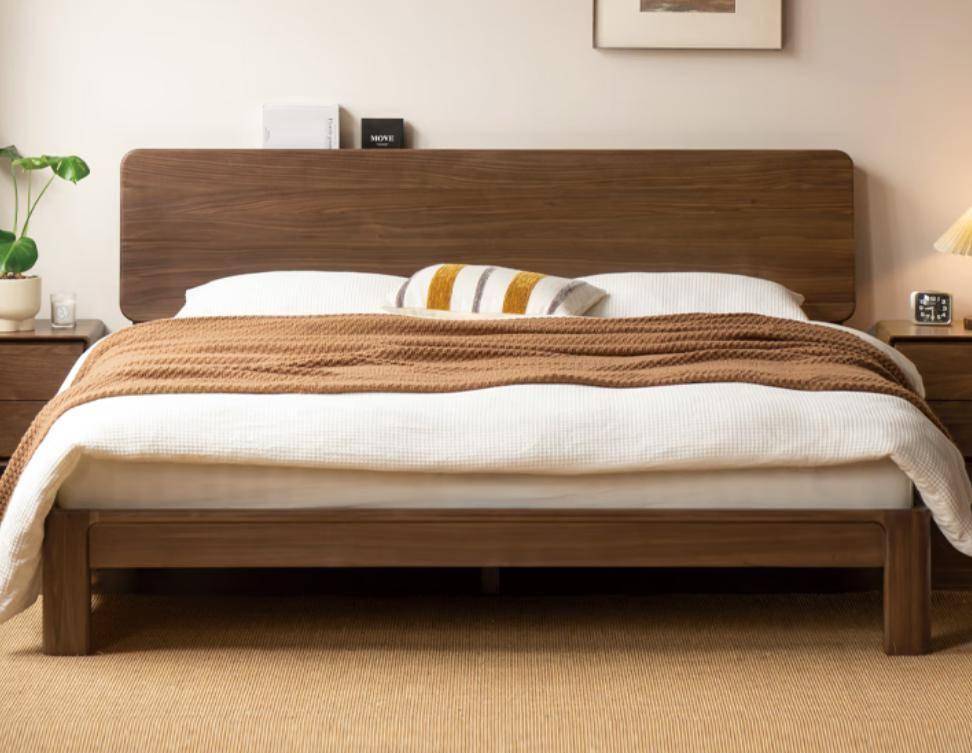 黑胡桃木的 天然木纹随时间推移愈发醇厚,使这款床成为可以传承的优质家居,适合中式、新中式和简约风格的卧室。