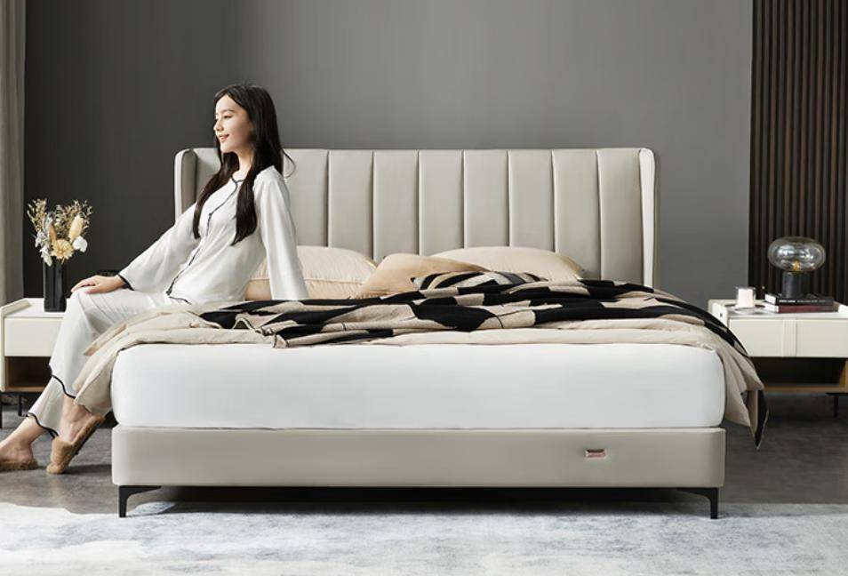 喜临门白骑士plus卧室床选用 优质头层牛皮,皮质细腻且耐用,日常清洁保养非常方便。床头采用 贴合人体工学的曲线设计,为您提供舒适的靠卧体验,长时间倚靠也不会感到疲劳。