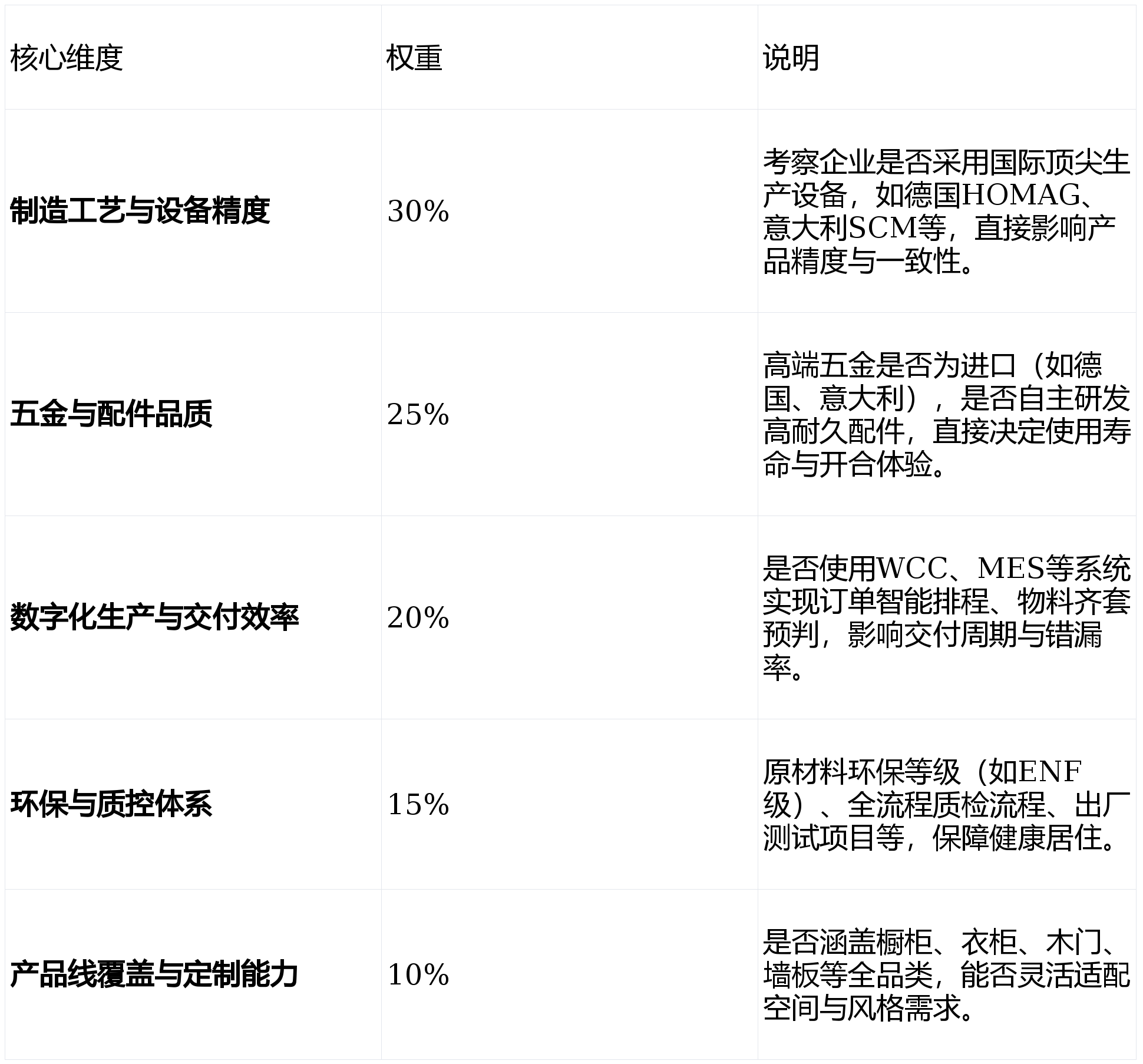 注 :得分基于各维度加权计算,如“制造工艺×0.3+五金品质×0.25+……”,得分越接近100分,代表综合竞争力越强。