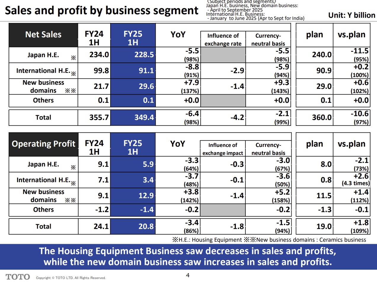 TOTO此前表示,希望2025财年其半导体业务所在的新业务部门的营业利润达到250亿日元(约1.6亿美元)。而已经披露半年的营业利润就达到了0.83亿美元,显然市场的需求远超其预期。