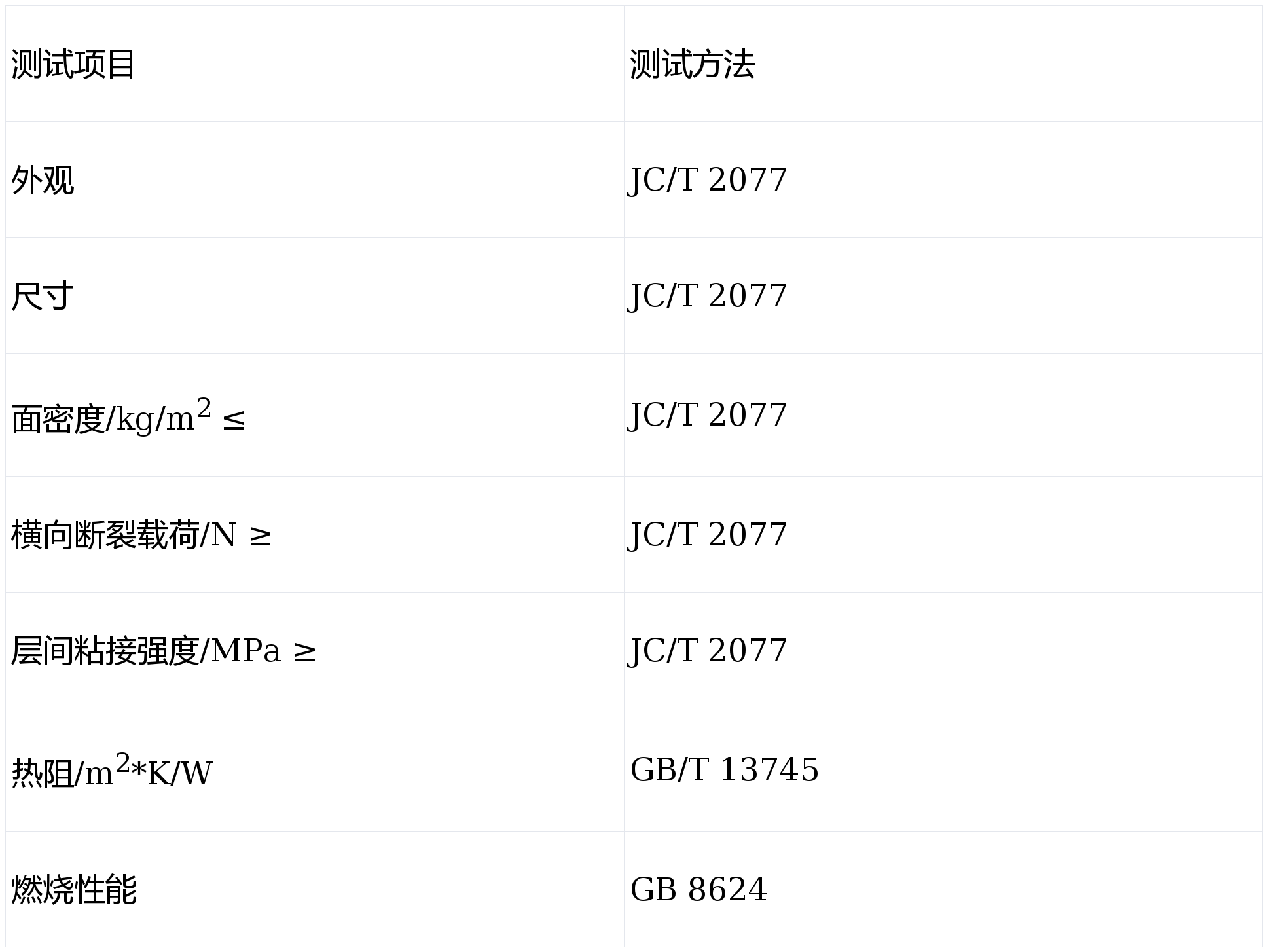 JC/T 2077复合保温石膏板测试指标: