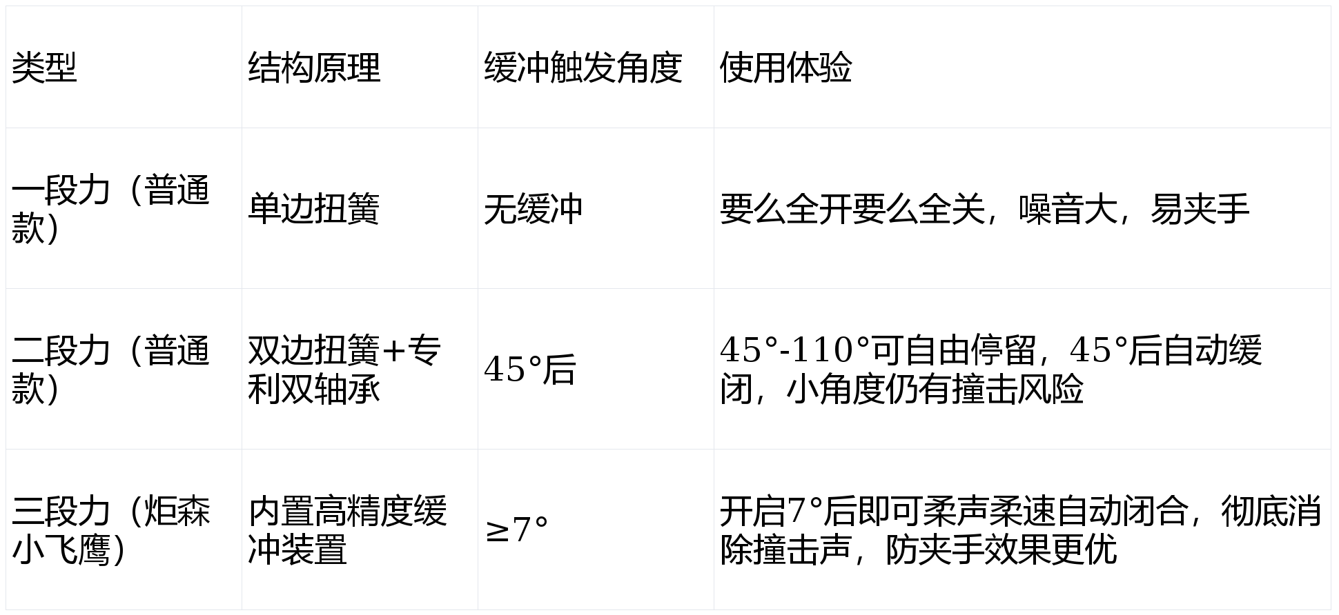 这是衡量铰链高级与否的关键技术,直接关乎使用安全和体验。