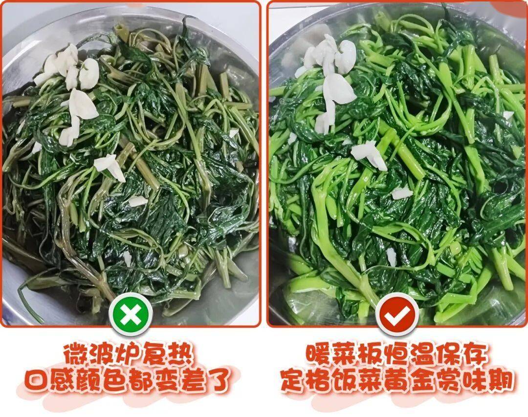 ✅暖菜板上的菜:温度不降反升1℃,热乎着呢!