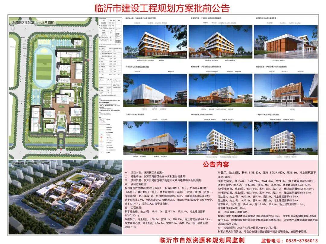 批前公告临沂沂河新区实验高中规划方案来了涉及教学楼、宿舍、艺体中心……一起来看详细内容