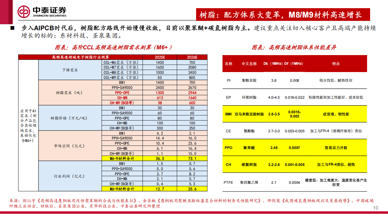 当前,以人工智能和半导体为代表的高科技产业,正成为新材料需求的绝对主力。在AI算力狂飙的背景下,PCB材料产业链迎来全面升级。高阶覆铜板(CCL)正从传统的M2-4向M8-M9及以上层级跃迁,层数大幅增加,直接驱动特种电子布、高端树脂(如碳氢树脂、聚苯醚)以及电子级硅微粉等核心材料量价齐升。报告测算,仅特种电子布市场在2026年空间有望达到约178亿元,年增长率惊人。