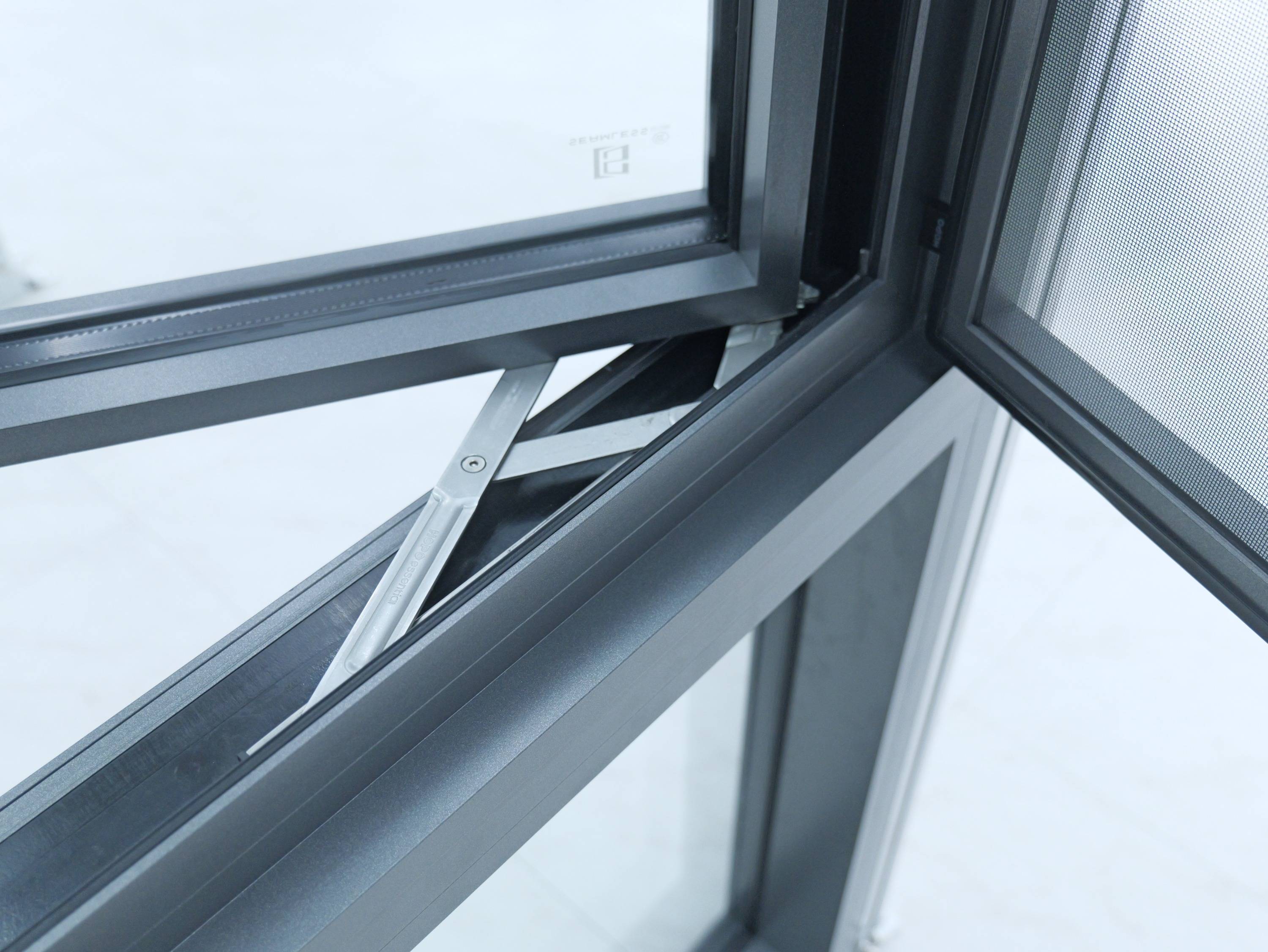 3.悬窗(上悬、下悬):常用于卫生间或厨房,五金可实现上悬或下悬通风。其核心是特殊的铰链和传动装置。