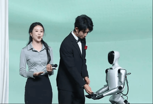在发布形式上,京东将机器人深度引入新品发布流程。机器人不再只是互动装置,而是与主持人、发布官协同推进发布节奏,通过实时对话回应产品性能、测试结果与使用场景问题,参与新品“讲解—测试—解读”的完整链路,推动新品信息从单向输出升级为更具结构性的人机协同呈现。