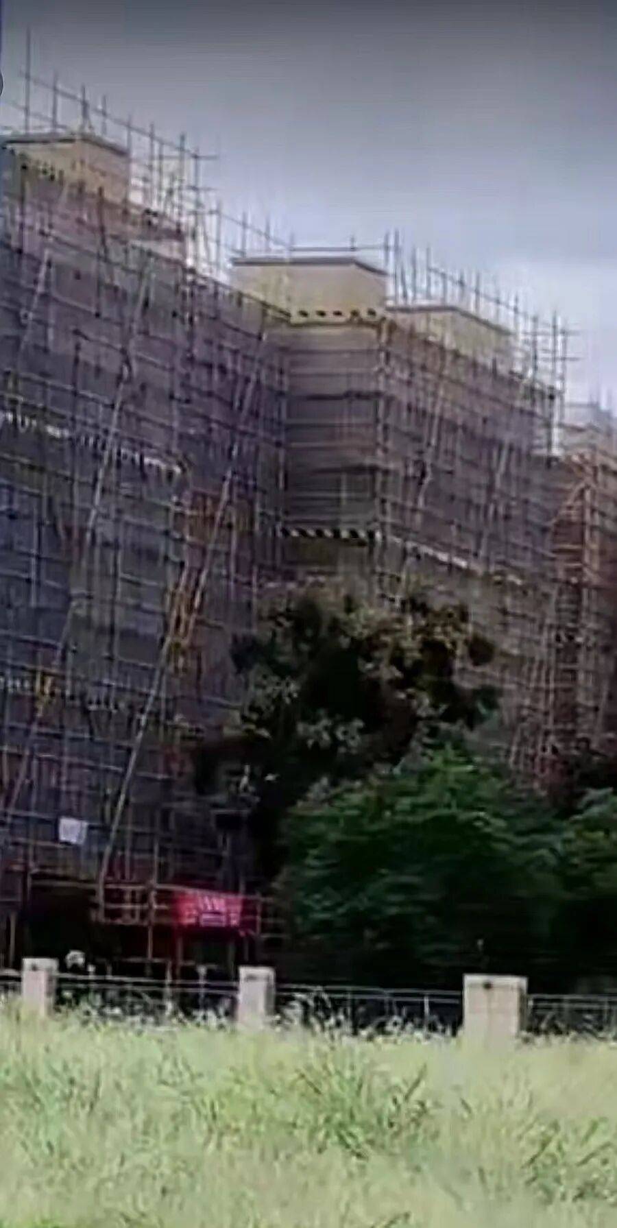 居民成女士告诉记者,小区13栋楼中,有5栋被列为首批进行外墙改造(剩余8栋尚未开工)。他所住的3号楼即是其中之一。“去年10月8日开工后,居民开始遭遇噩梦。”她说,不同于同一区域其他小区的吊篮施工,结香苑采用了全包脚手架。脚手架完成搭建后,所有住户只能门窗紧闭。“烟尘漫天,轰轰隆隆,在长达一个多月的时间里,每家每户被搞得鸡犬不宁!”