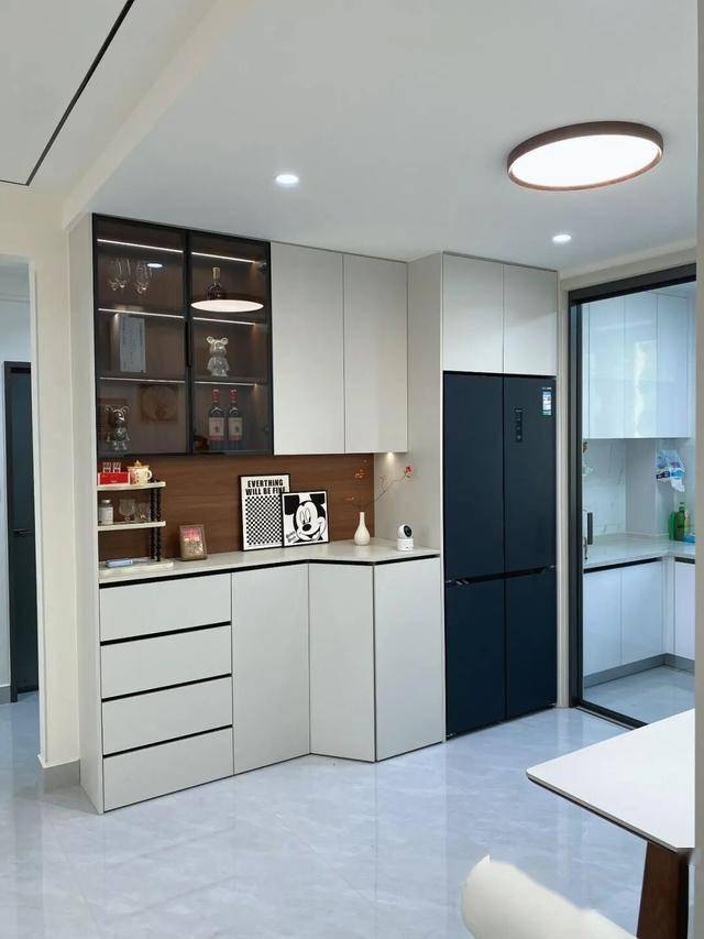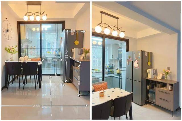 当然,即便不做餐边柜,也不影响冰箱放餐厅里,只要位置合理,避开主要通行动线即可。