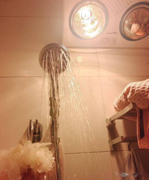幸好淋浴区距离灯的浴霸有一段距离,要不然的话直接擦到身上,后果不堪设想。