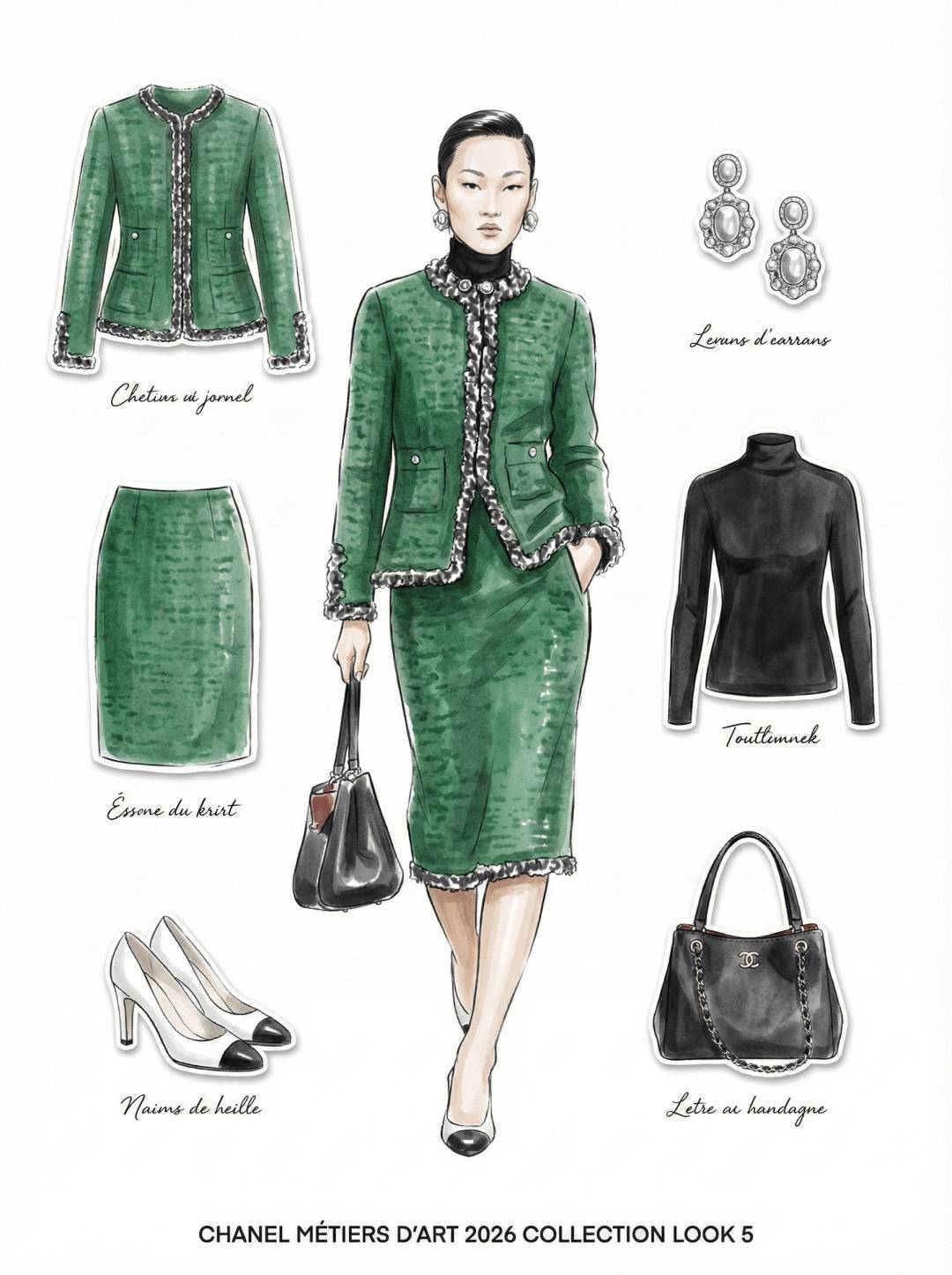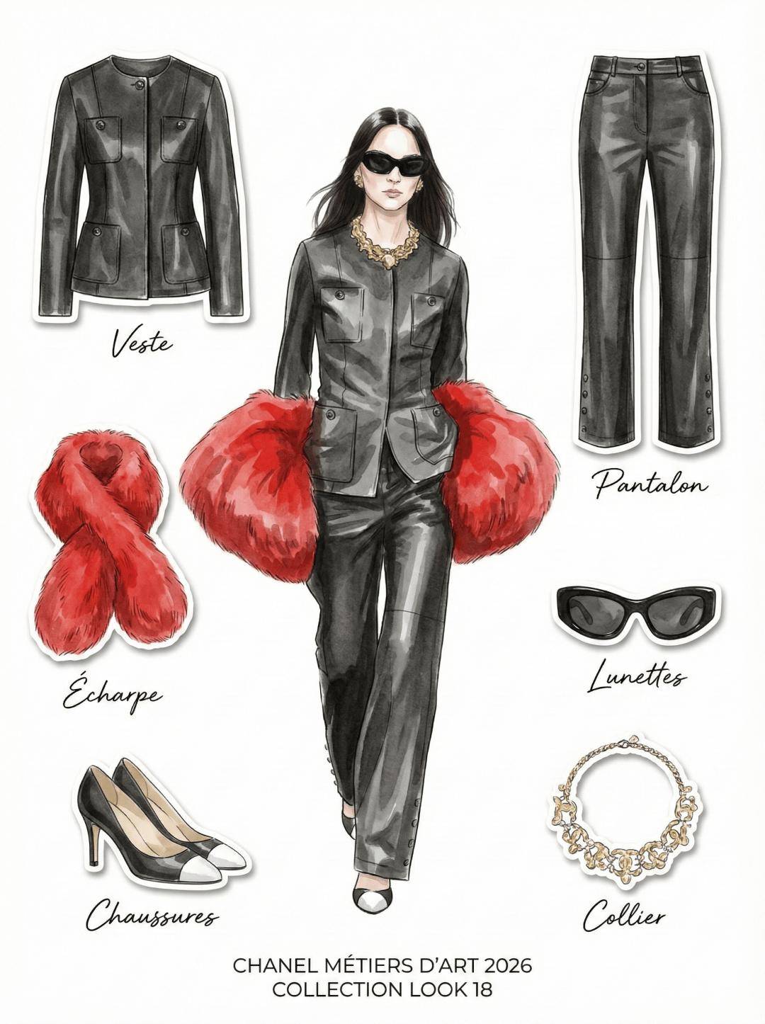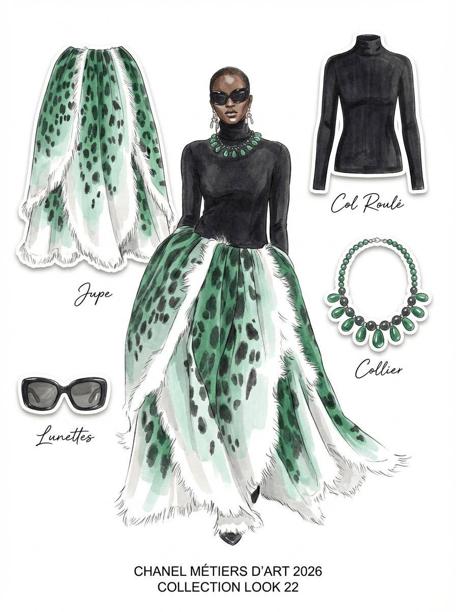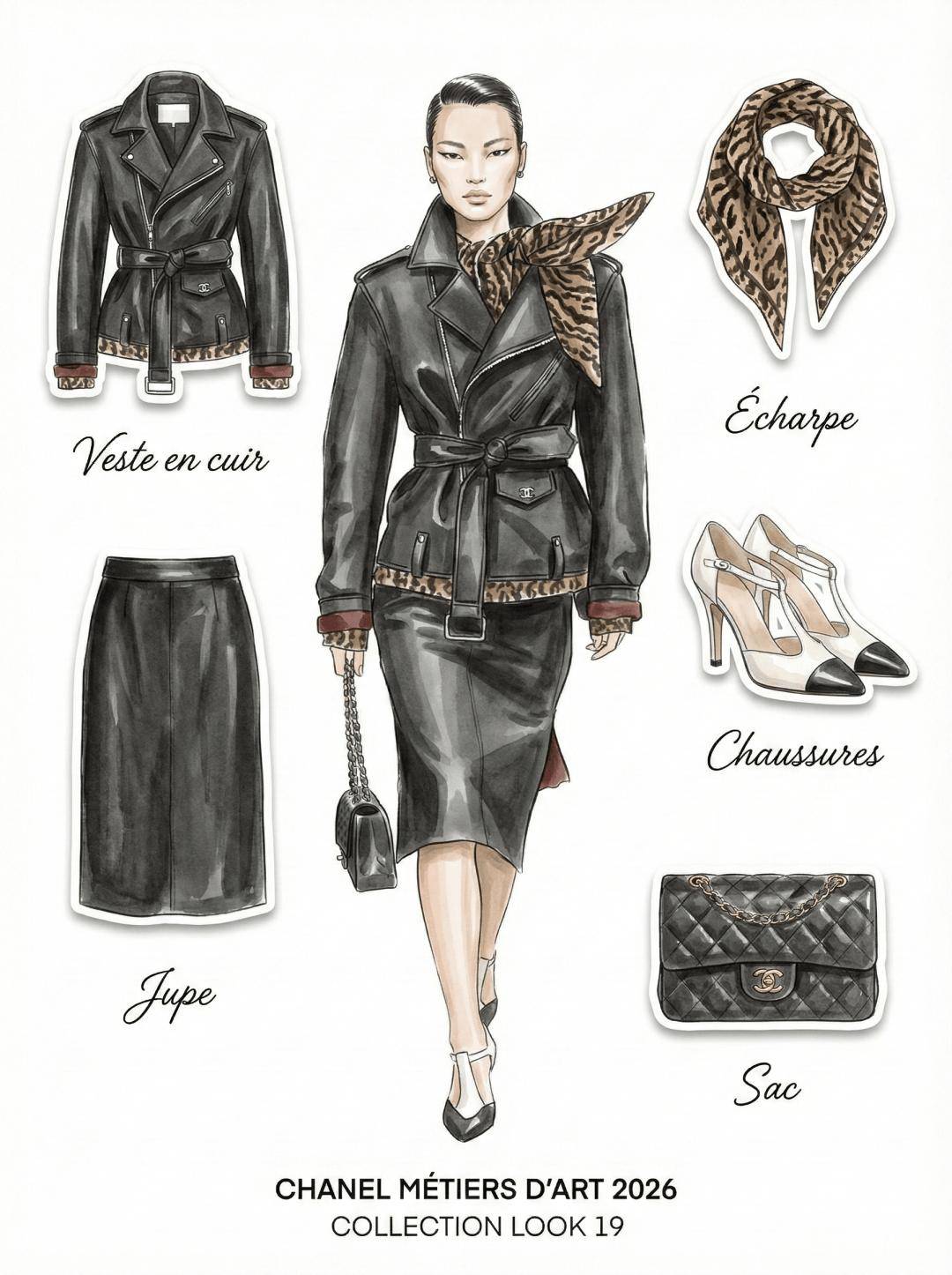 豹纹图案,对于Gabrielle Chanel来说不仅是装饰,更是一种独立宣言。不过Matthieu Blazy并非以张扬的印花形式出现,而是通过Lesage刺绣工坊的精巧工艺,让其化为提花织物上若隐若现的斑纹,或是用不同深浅的丝线编织出细腻的肌理。它被运用于经典套装上,以及阔腿裤、修身连衣裙,甚至运动风的发带之上,褪去了传统的野性象征。