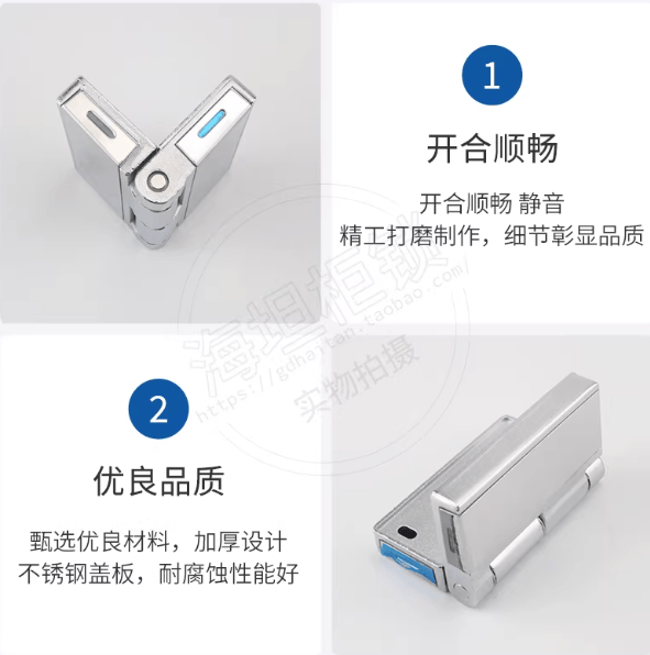 场景化功能优化,适配多元工业需求。针对不同工业场景的痛点,不锈钢盖板铰链与重型设备箱合页衍生出丰富的功能形态,实现精准适配。在安全防护方面,多数产品达到IP54-IP65防护等级,铰链缝隙加装耐油丁腈橡胶密封圈,可阻挡粉尘、油污与水汽渗入,部分海洋工程用产品防水密封等级达IP67,通过船级社认证,耐受高盐雾环境。功能适配性上,支持90°、120°、180°等多角度开合与定位,180°大开启角度为设备维护提供充足操作空间,角度定位功能可使盖板开启后自动锁定,无需人工支撑。可拆卸设计成为运维利器,通过快拆式卡扣、插销或模块化结构,实现无工具快速拆装,将柜门拆卸时间从传统的15分钟缩短至30秒,大幅提升检修效率。部分款式还配备液压阻尼组件,实现缓慢闭合,避免冲击对设备精密元件造成损伤,同时防止夹伤操作人员。