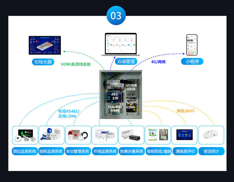 高速服务区智能厕所:对于长途司机与旅客而言,时间就是效率。服务区部署该系统后,司乘人员无需下车即可通过大屏了解厕位情况,15分钟内完成如厕休息,极大提升了服务区通行效率。