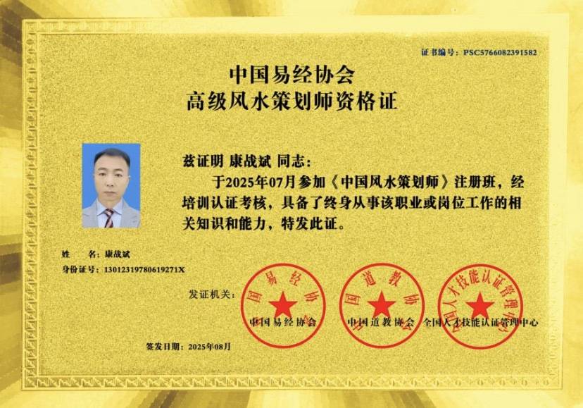 康战斌先生自幼苦读经典,博览古籍,后得机缘拜太极五行文化创始人闫玉华教授亲传弟子郭千伟(极谦老师)为师,系统学习国学文化,潜心研究易学、佛学、道学、武学、现代维度信息学、峦头、理气、八宅和中医道医所长等诸家文化理论,在恩师郭千伟首创的五维文化中,业精于勤、勤学苦练、理论结合实践,把五路勘测布局体系:观、辨、定、析、评。柔和极谦五维文化理论,融汇贯通,得悟:宇宙事物的基本属性是时间、空间、层次统一的五维空间关系。近年来五侯老师,深入研究、创新实践恩师郭千伟创立的“极谦五维定象法”、“罗盘五路勘测布局法”、“现代建筑多维析象法”,为千余家公司机构和个人策划设计、居家安康、商贸通达。先后参与编著策划《书画风水》、《中国风水百科》和《太极五行风水学》等著作书籍,畅销20余万册。长期为各界人士提供城市美学规划、景区文化布局、企事业和楼盘选址及设计、商铺和家居风水布局、咨询等服务,被多家知名企业特邀聘请为高级风水顾问和国学文化讲师,深得信赖和高度赞誉,被大家亲切的誉为:“易经风水界现代建筑堪舆大师”和“最有实践经验的风水大师”。五侯老师愿其一生传承和发扬太极五行文化 ,将所学所会与大家共同分享,助力您的人生和事业趋吉避凶,风生水起、家兴业旺!结缘五侯、您必是权贵之巅的璀璨星辰!