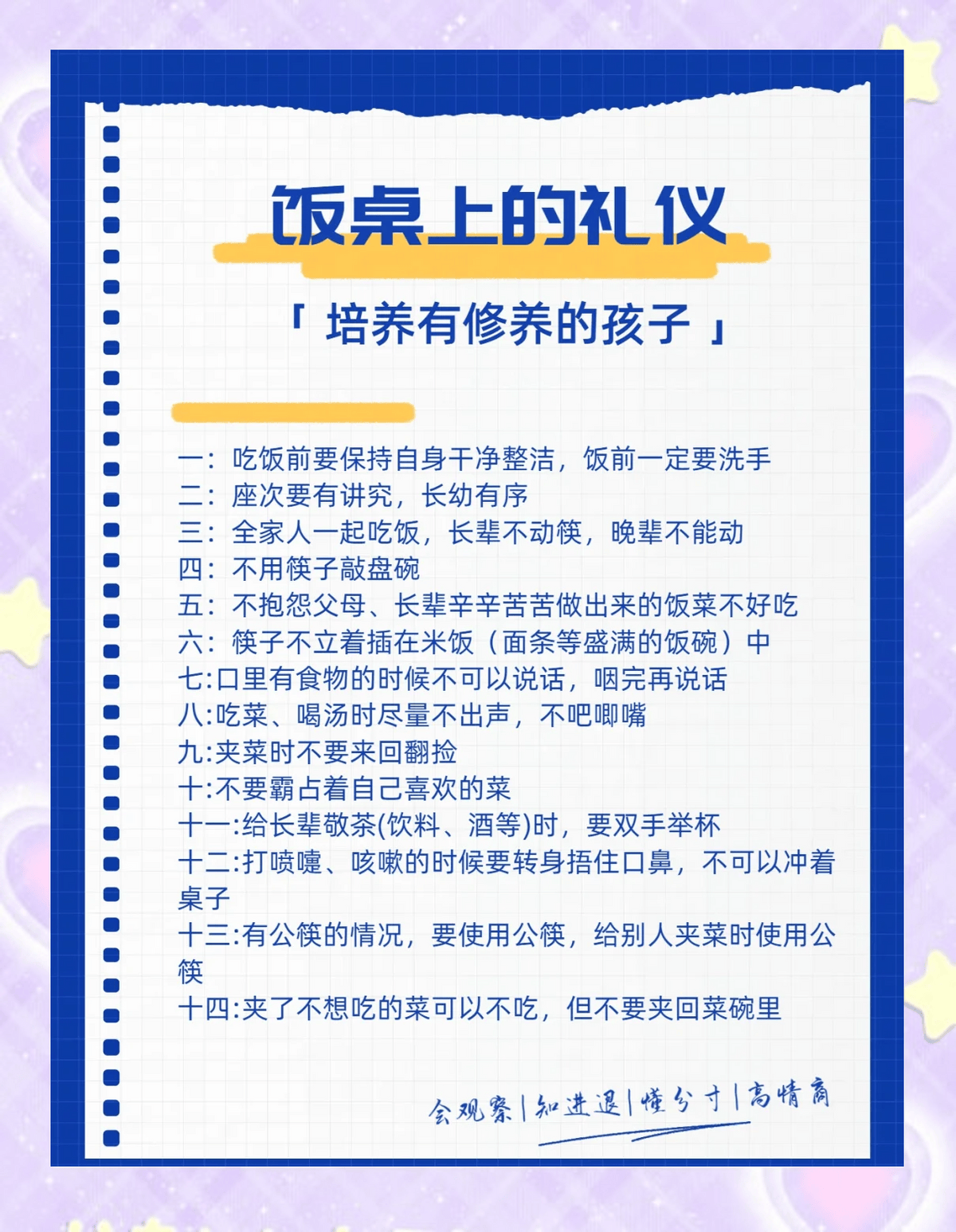 餐桌上,孩子的坐姿、神态、动作、目光、表情等,已经向餐桌上的人展示了,你是怎样的人?一顿饭的工夫,足以让一桌子人对你有了解。