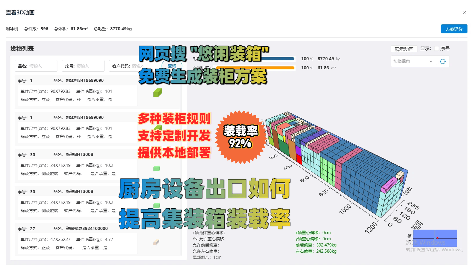 厨房设备出口装柜,真正的成本控制,从来不是“少装一件”,而是少用一个集装箱。当货物结构越来越复杂,仅靠人工经验,已经很难支撑稳定、高装载率的出口节奏。