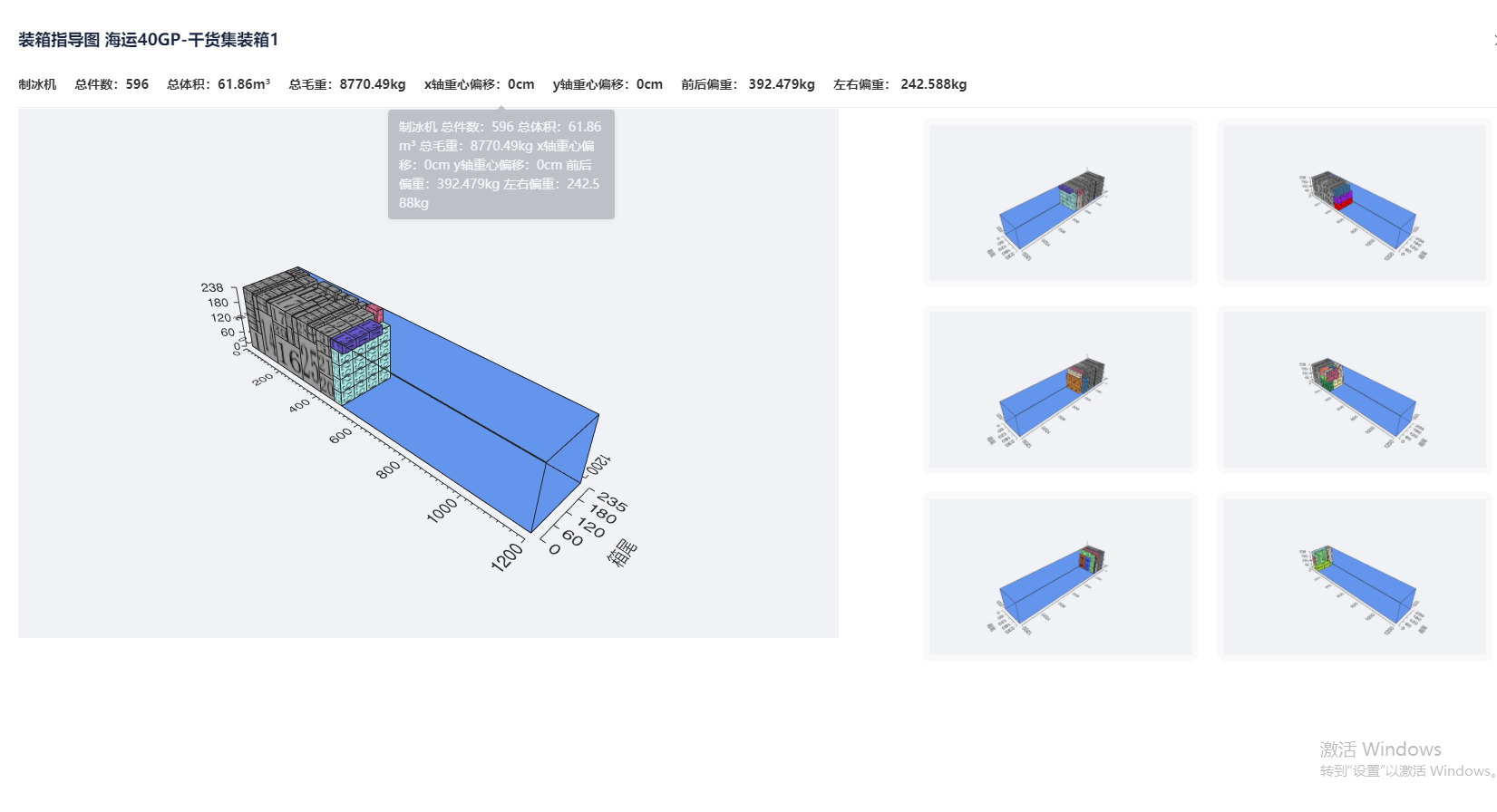 2、整体模拟,而非局部凑数:自动生成多种装柜方案,对比装载率与集装箱利用情况。