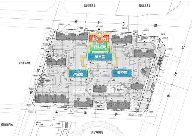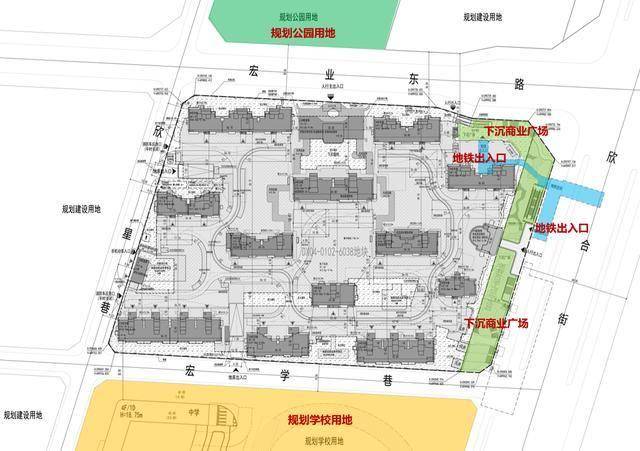 挂牌文件要求设置配套商业,从公示总图可以看出位于地块北侧及东侧,结合下沉广场设置在地下。