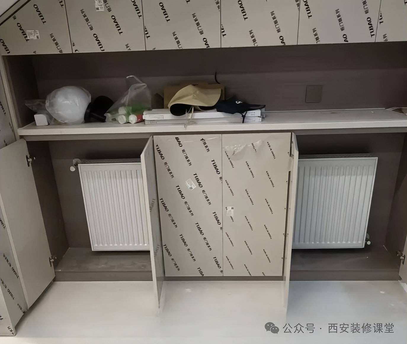 因为没有地方放置暖气片,导致定制与暖气片冲突,结果把暖气片藏起来,冬季散热较慢,而且导致定制开裂变形。