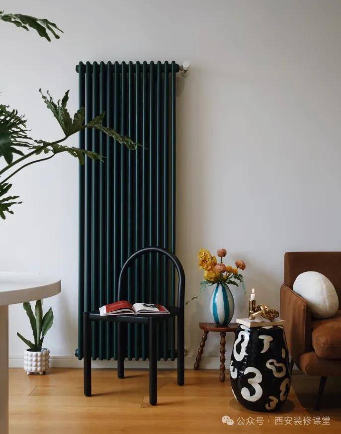 最简单的就是选择和居室风格协调的暖气片造型和材质,然后采用后期软装搭配,弱化暖气片的存在,让暖气片作为一种装饰。