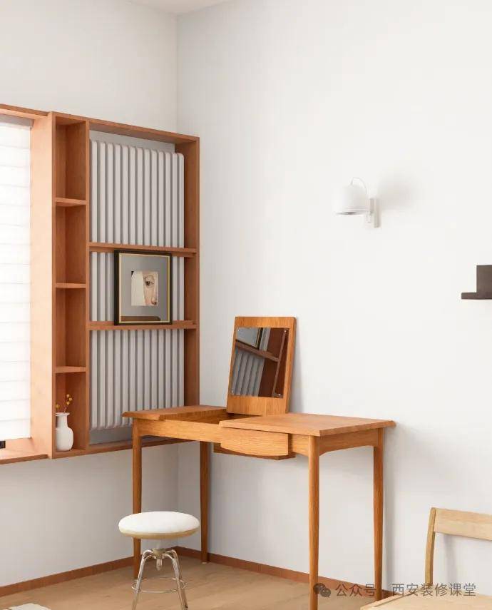 也可以采用木质造型,满足视觉颜值和置物,但是南方适用,北方分分钟让木质开裂和熏黑。