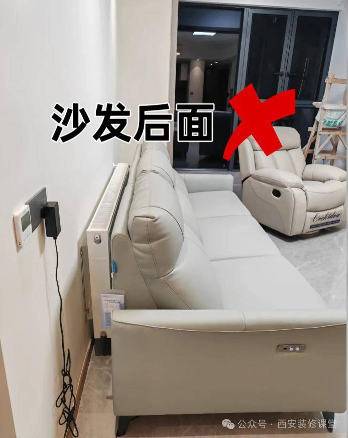 购买精装修的房子,暖气片与沙发位置冲突,也没有装修预算砸掉重新装,结果沙发靠着暖气片,不仅影响散热和损坏皮质沙发,而且导致客厅空间更小。