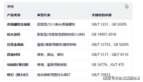 根据《钢结构工程施工质量验收标准》(GB 50205-2020)、《建筑钢结构防火技术规范》(GB 51249)等,以下产品强制要求提供有效型式检验报告: