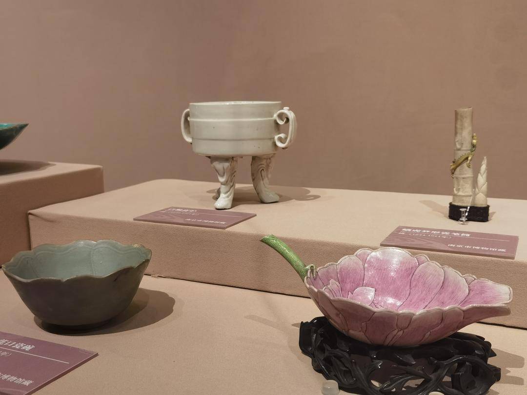 除了园林建筑,园林中文人雅士、士族女性的生活起居也呈现在了各类文物当中,展览中展出了多件大小不一的瓷瓶、瓷罐、瓷碗,上面绘制了各式各样的园林生活图景,在松竹芭蕉下饮酒饮食的士大夫,在亭台轩榭上弹琴吹笛的士族女子,“古典园林一方面文人审美、精神志向的体现,另一方面它也是生活起居的地方,在这些文物里我们可以看到非常鲜活、有趣的生活场景。”