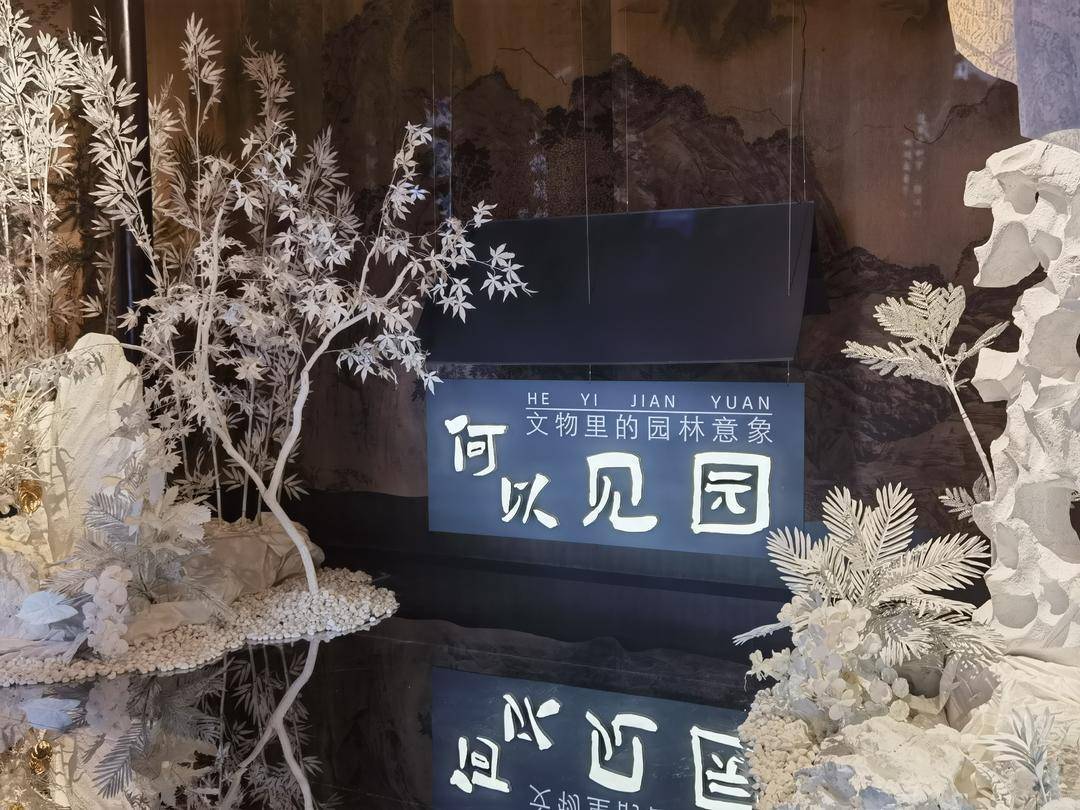 中国园林最早起源于帝王狩猎的“囿”和通神的“台”,秦汉时期演变为专供帝王理朝、游乐之地,魏晋南北朝时期山水园林逐渐形成,到唐宋时期发展为写意山水园林,元明清时期,一大批文人画家参与造园,园林荟萃盛极一时。“何以见园”展览分“观合 园色如许”、“见微 匠心独运”和“见心 诗意栖居”三个部分,展览的第一部分,勾勒出中国园林的发展历史,并通过表面绘制、雕刻有园林整体面貌的文物,来体现园林山水式的突出特征。第二部分从微观视角出发,聚焦到园林的局部。通过山石、花木、建筑展现造园艺术的精妙,带领观众从细处的审美旨趣体味园主的格局和风骨。第三部分以园中生活的人为主角,通过活泼温暖的日常,窥视文人在恬静的园居生活中自由悠游的性灵。