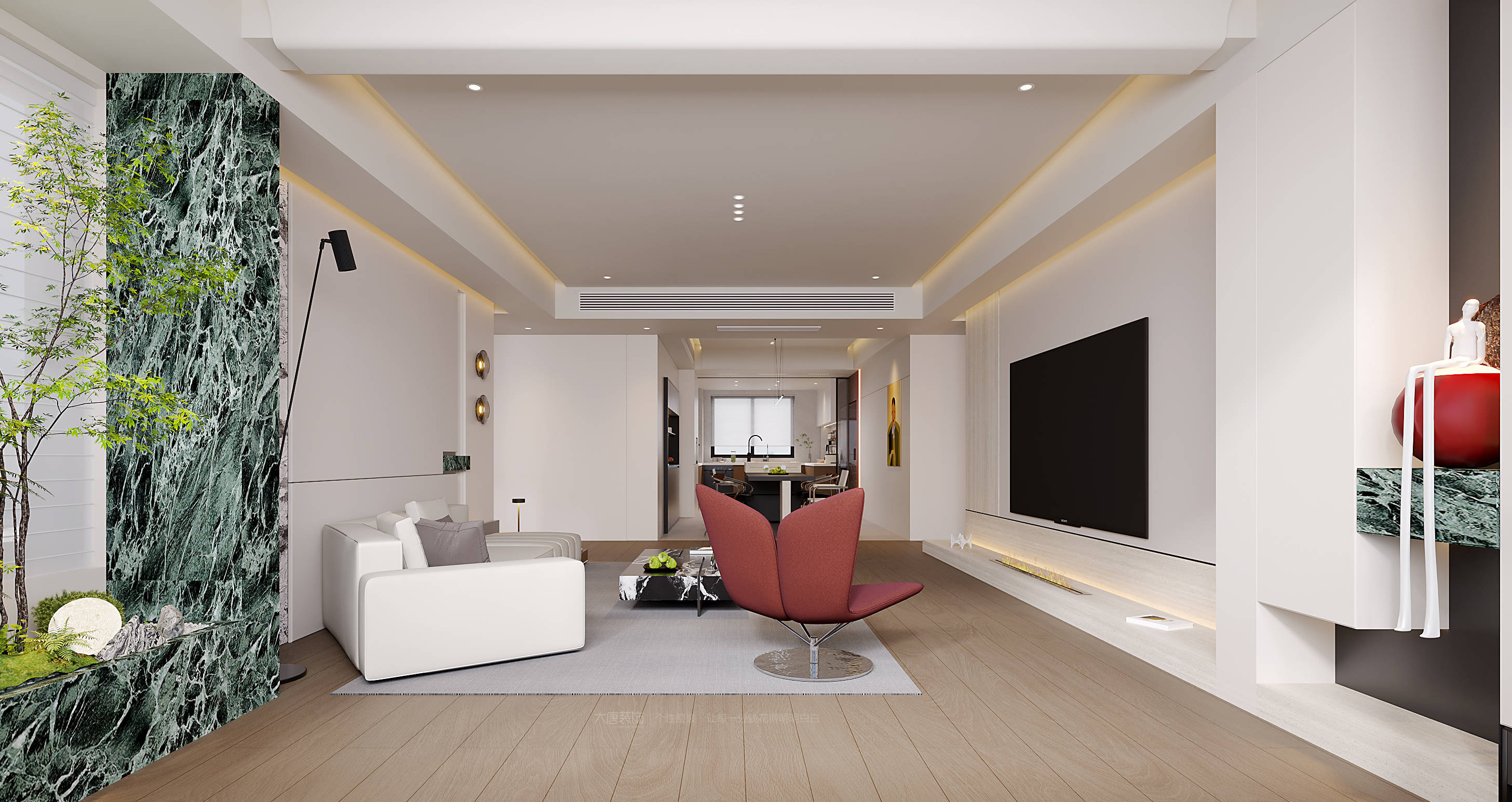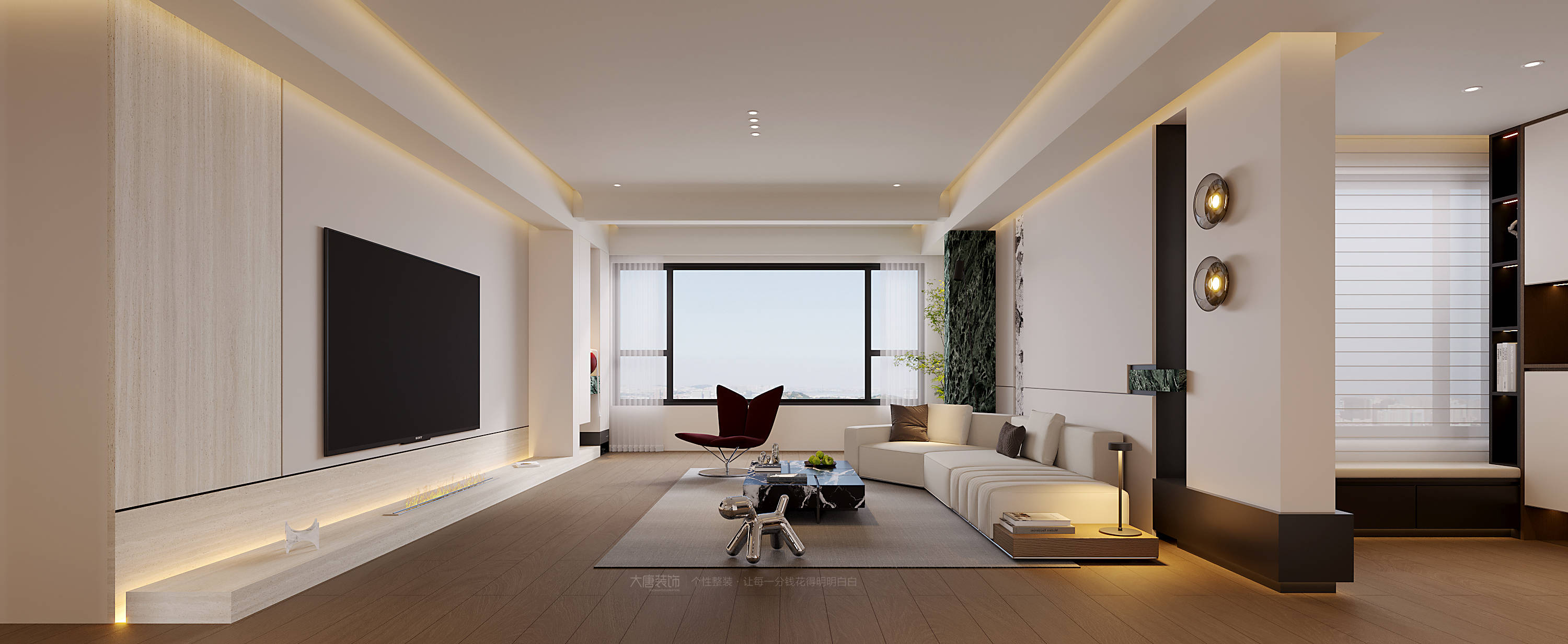 本案是一套现代风格装修案例,干净利落的轮廓,勾勒出空间的秩序感,白色为基调,搭配低饱和色系,营造高级感。整体开放式设计,让光线与空气自由流动。用圆弧沙发代替大体量的沙发组合,增加空间的灵活性,让空间多一些呼吸感。克制的线条,质感的材质,隐形的收纳,让空间既实用又有高级的松弛感。