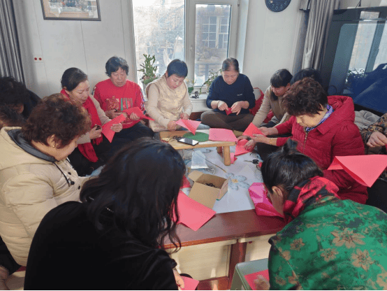 最受期待的剪纸教学环节中,非遗传承人黄玉玲老师详细的讲解了剪纸的历史渊源、工具使用方法及对折、镂空等基础技巧。随后分步演示新春主题(福字、窗花、生肖马、吉祥纹样)与家风主题(家和万事兴、孝老爱亲文字纹样)剪纸图案,指导妇女们共同实操创作。大家手持剪刀认真剪裁,一张张寓意美好的剪纸作品逐渐成型,现场充满欢声笑语。