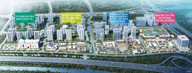 二号地块:建面约8.158万㎡,经营业态:全球食品/农产品国家展示馆/总部基地、国内地标食品、农产品集中展示销售区、进口肉类/鲜活海产品、冷链食品展示交易区、特色美食街区、公寓酒店配套生活区等。