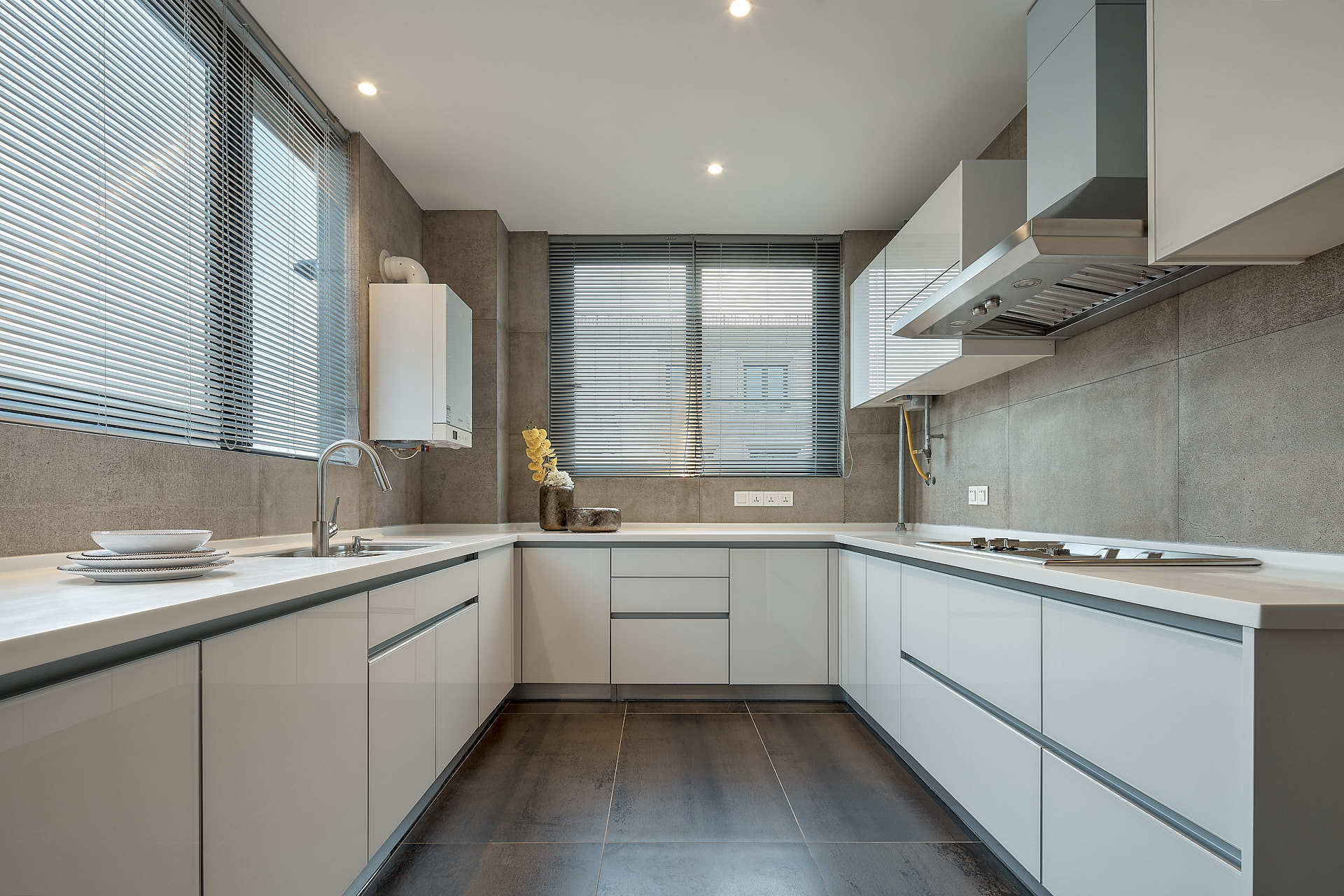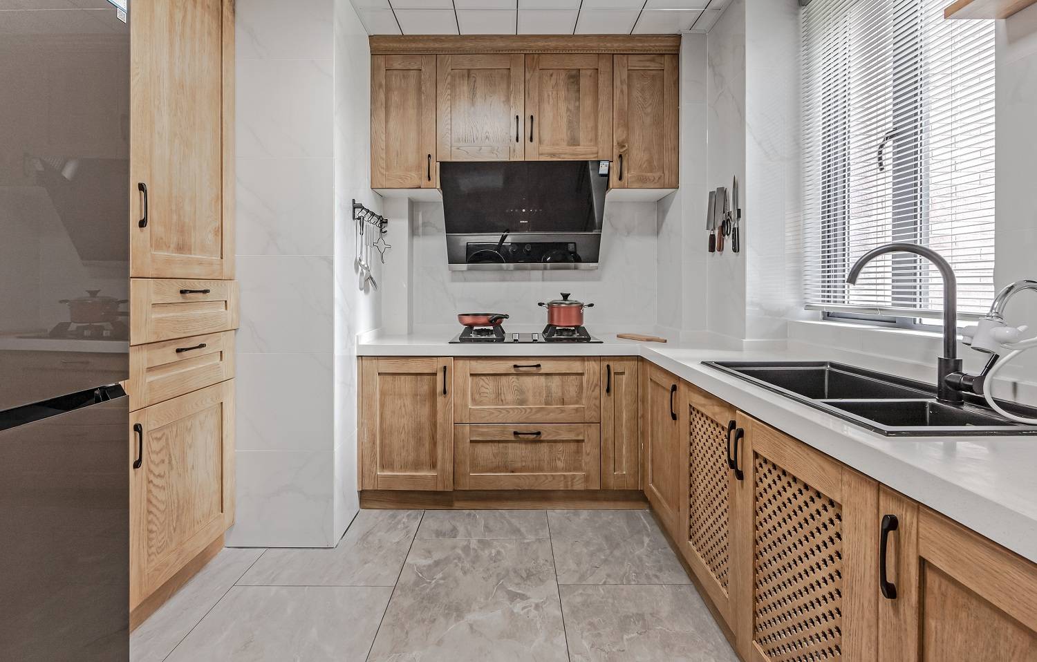 厨房核心就是顺手,“取-洗-切-炒-盛”这黄金动线千万别乱,不然做饭时来回绕路能累懵。橱柜布局得按户型来:小户型优先一字型或L型,不占地方还够用;如果厨房面积够,U型布局收纳和操作空间都拉满,转身就能搞定全流程。我家之前装成一字型,切菜和炒菜区挤在一起,后来悔得不行,这点大家一定要避坑。