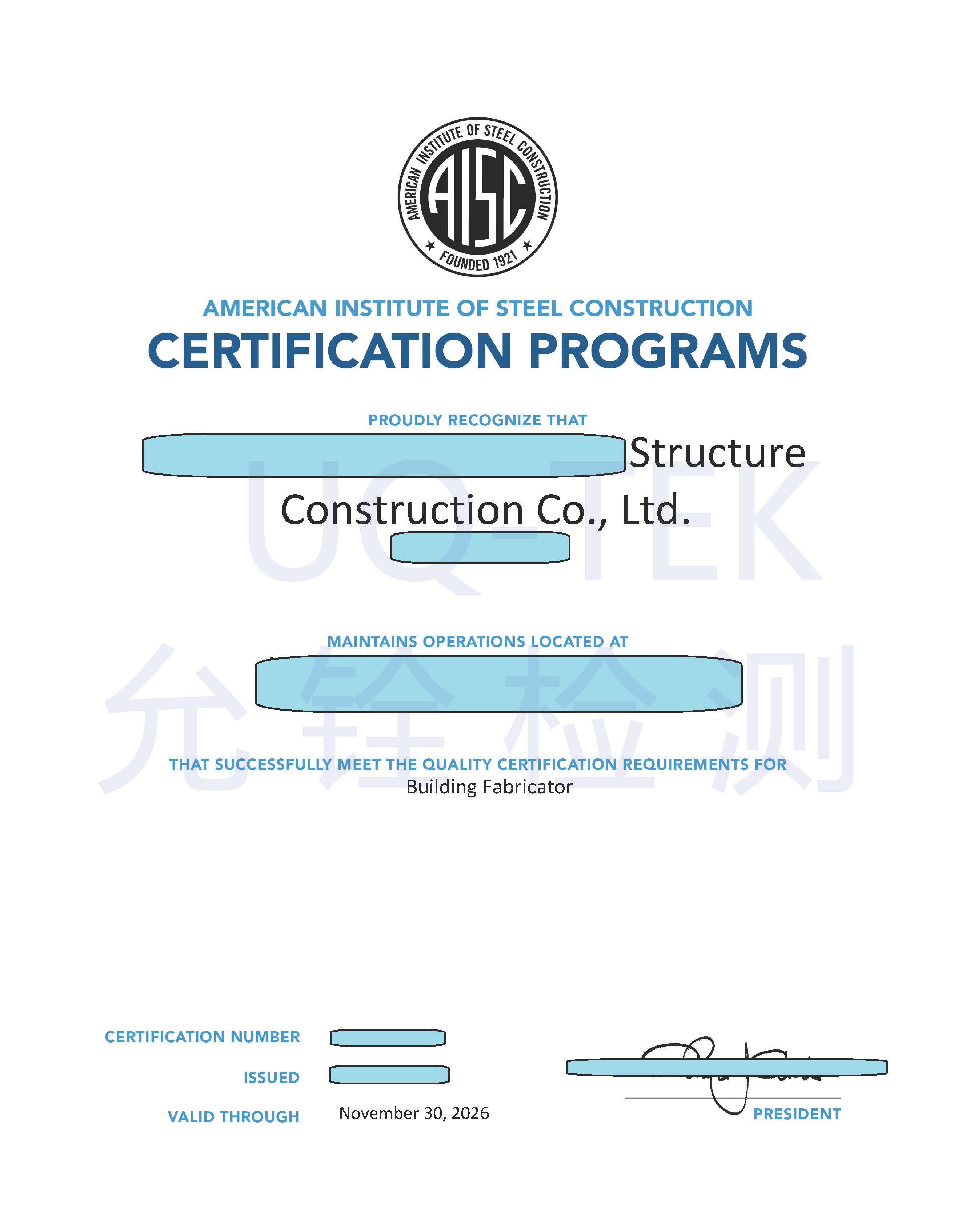 综上,AISC认证是钢结构企业提升核心竞争力、布局国际市场的重要抓手。国内企业应充分认识其价值,严格遵循标准完善自身能力,通过认证实现品牌升级与高质量发展,助力我国钢结构行业走向国际化。