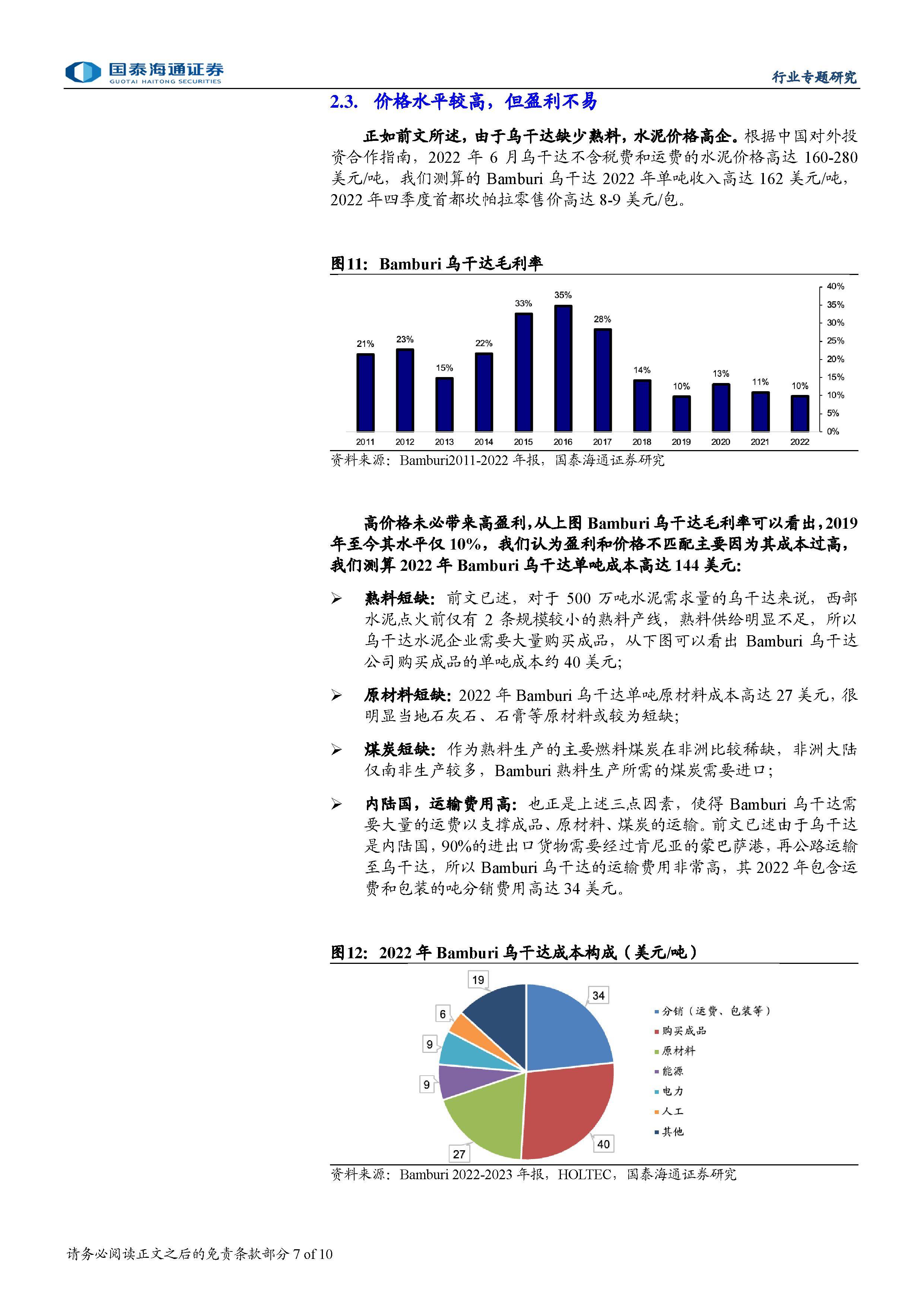 水泥市场方面,乌干达呈现“高需求、高价格、低盈利”的独特格局。2000年全国水泥产量仅37万吨,到2023年已飙升至510万吨,反映基建与城市化拉动效应显著。目前全国仅有3条熟料生产线,熟料严重依赖进口,导致出厂价高达160美元/吨以上。然而,高昂的原材料、煤炭进口成本及经蒙巴萨港转运的物流费用,使得企业如Bamburi乌干达单吨成本达144美元,毛利率长期徘徊在10%左右,凸显“价格高但盈利难”的现实困境。