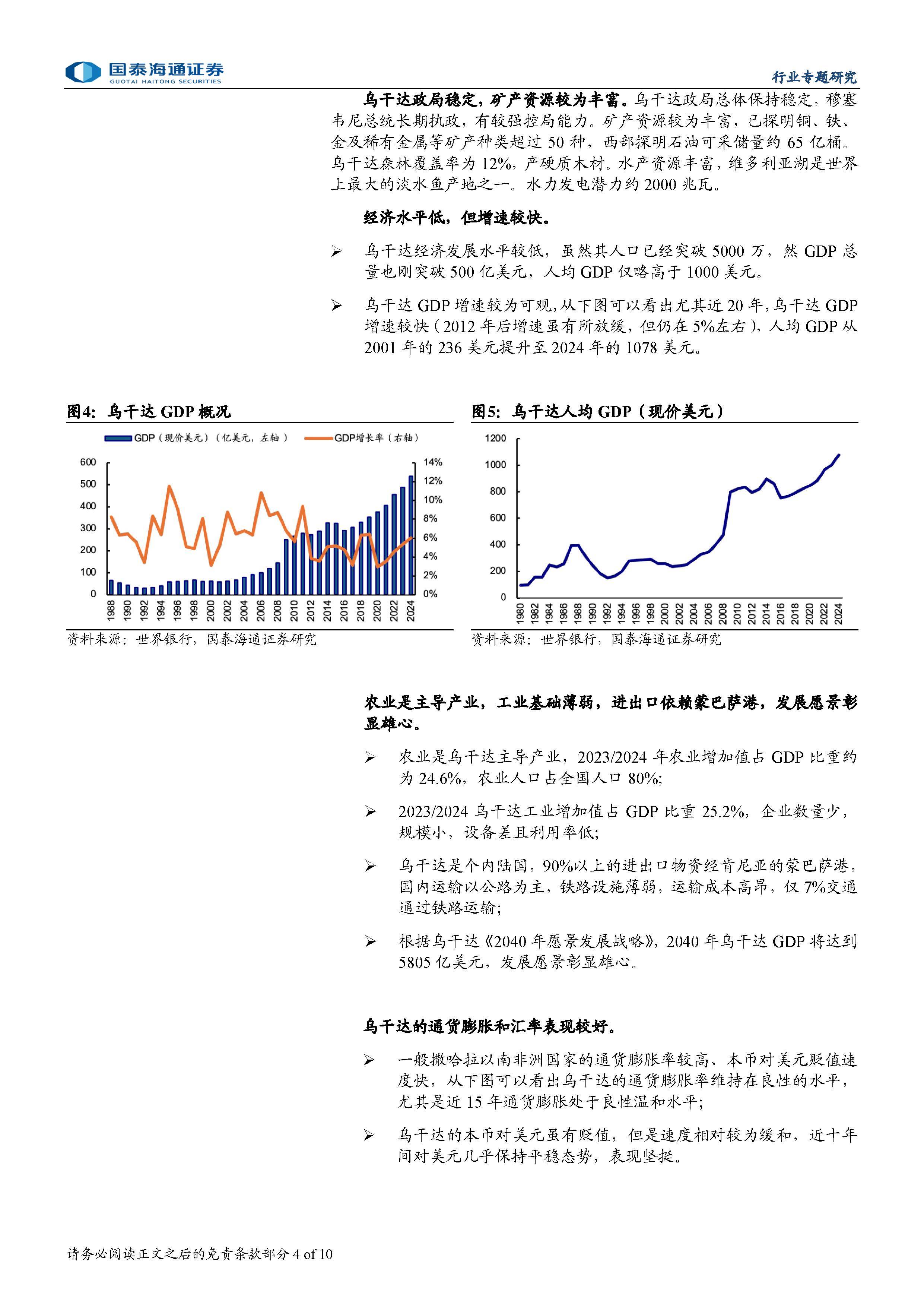 乌干达作为东非内陆国家,近年来展现出强劲的发展潜力。政局长期稳定,人口从2000年的2400万增长至2024年的超5000万,城镇化率也由12%跃升至31%,为基础设施和住房建设带来持续需求。经济虽仍处于较低水平(人均GDP约1078美元),但近二十年GDP年均增速维持在5%左右。尤为突出的是,乌干达先令对美元汇率长期稳定,通货膨胀温和,且实行自由外汇政策,资本可自由汇出入,对外资高度友好。这些宏观优势为水泥等基础建材行业提供了良好的投资环境。