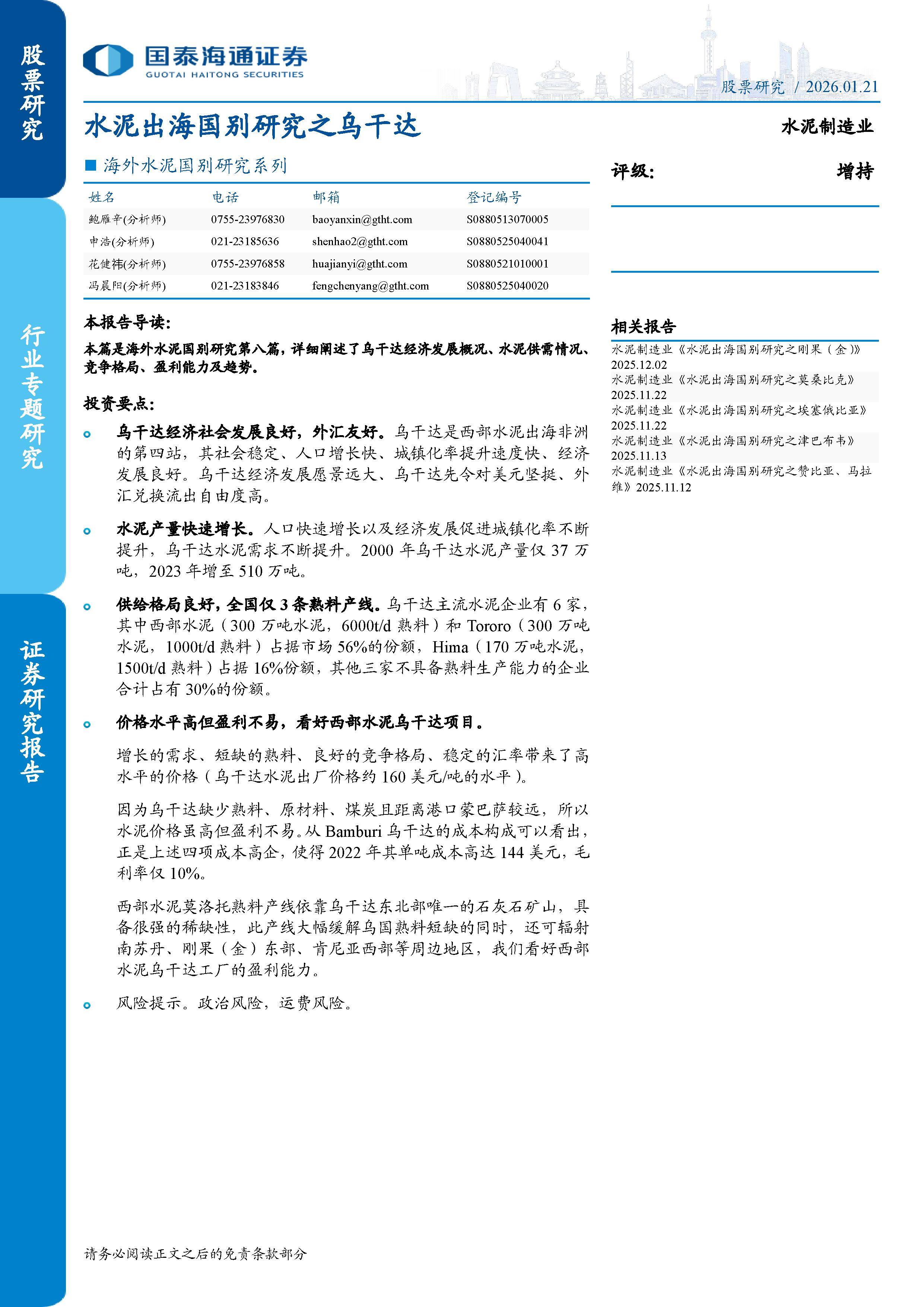 综合来看,乌干达凭借稳定的政治环境、快速增长的人口与经济、友好的外汇政策以及结构性供需缺口,正成为非洲水泥出海的理想目的地。而西部水泥的产能落地,或将重塑区域竞争生态,开启高回报投资窗口。对于关注新兴市场基建红利的投资者而言,该国具备极高的战略价值和研究深度。