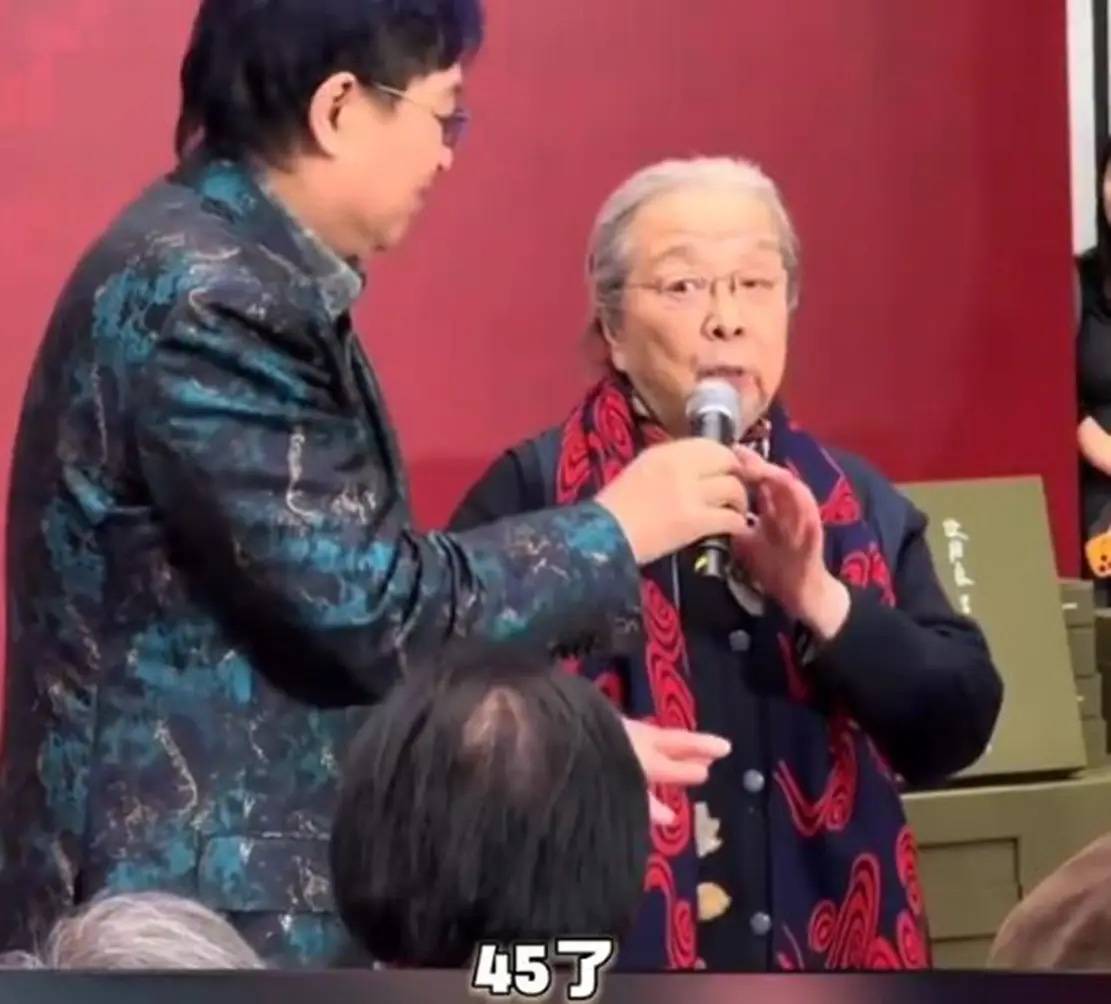 在前些天,李明启老师被问到多少岁的时候,她说“45了”!真是很乐观的老人,自己给年龄打了个对着,台下也跟着笑了起来。