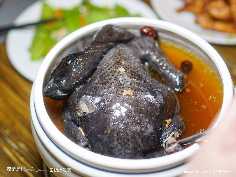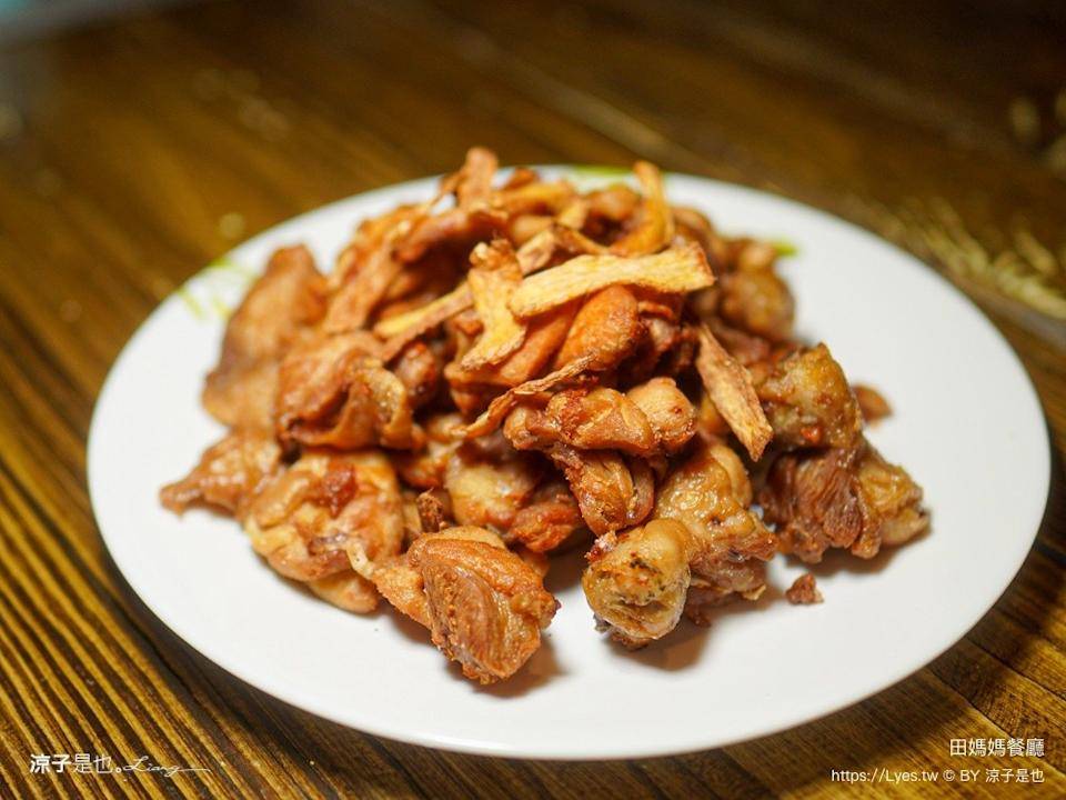 ▼招牌苦茶油鸡,这道据说是田妈妈的经典招牌菜色,以苦茶油加姜片大火煸炒,将鸡肉表面煸得微焦酥脆,肉质保有软弹不干柴,细尝有苦茶油的独特清香。