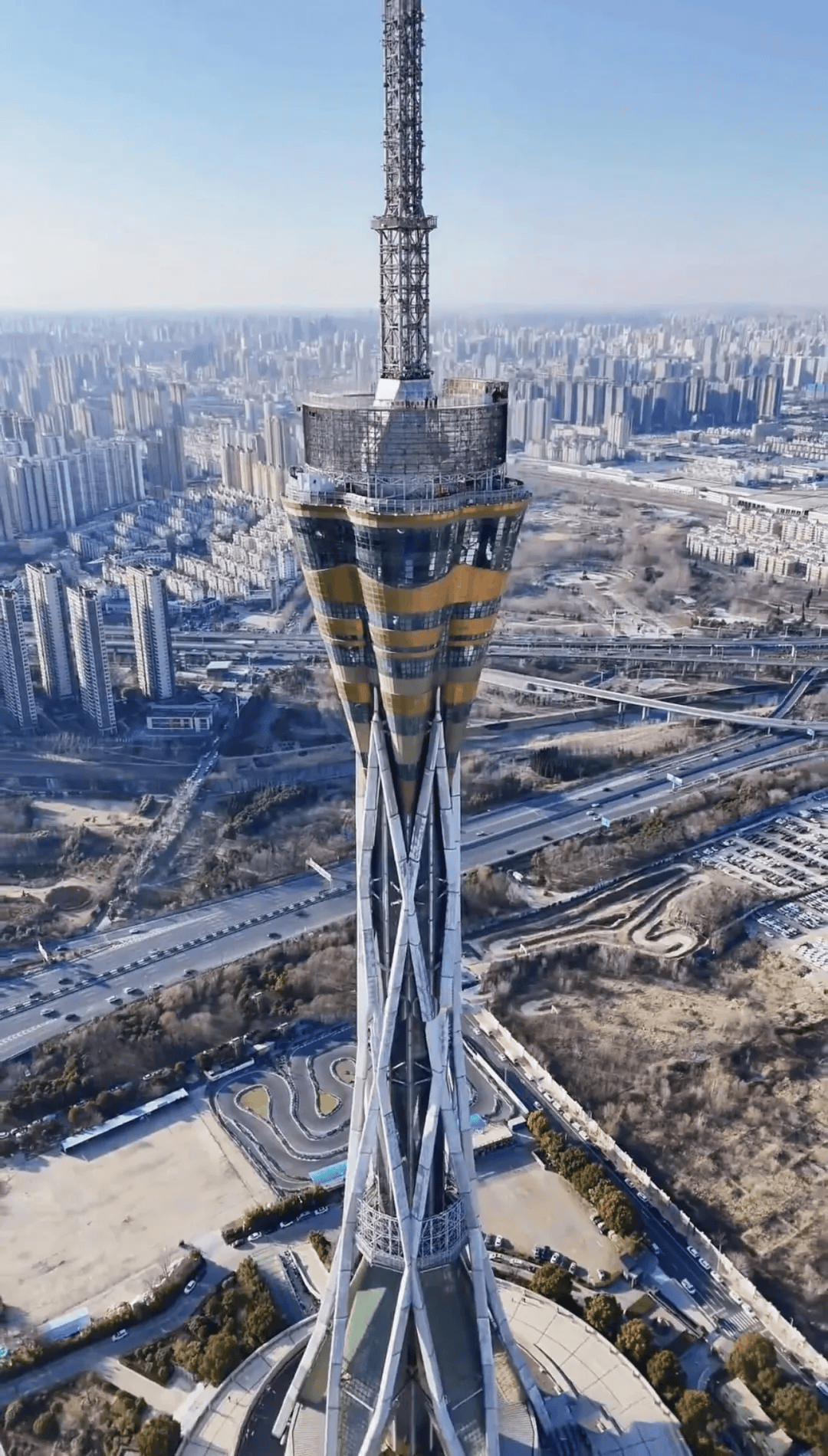 它就是中原福塔,又名河南广播电视塔,自2009年10月竣工以来,一直是世界已建成的最高全钢结构电视塔(高于东京铁塔333米、埃菲尔铁塔321米)。