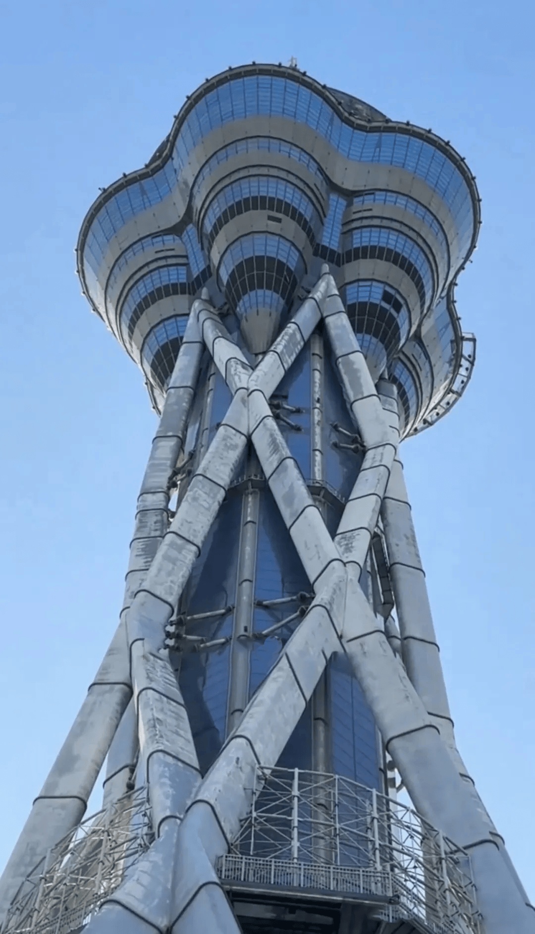 中原福塔由同济大学建筑设计研究院主持设计,建筑造型突破了传统的球体范式,塔身线条流畅如一曲抛物线,从空中俯瞰,五瓣展开的形态宛若一朵盛放的腊梅——那正是河南省花,暗合“五福临门”的吉祥寓意;自地面仰望,又似一束凝固定格的礼花,充满向上的动势。