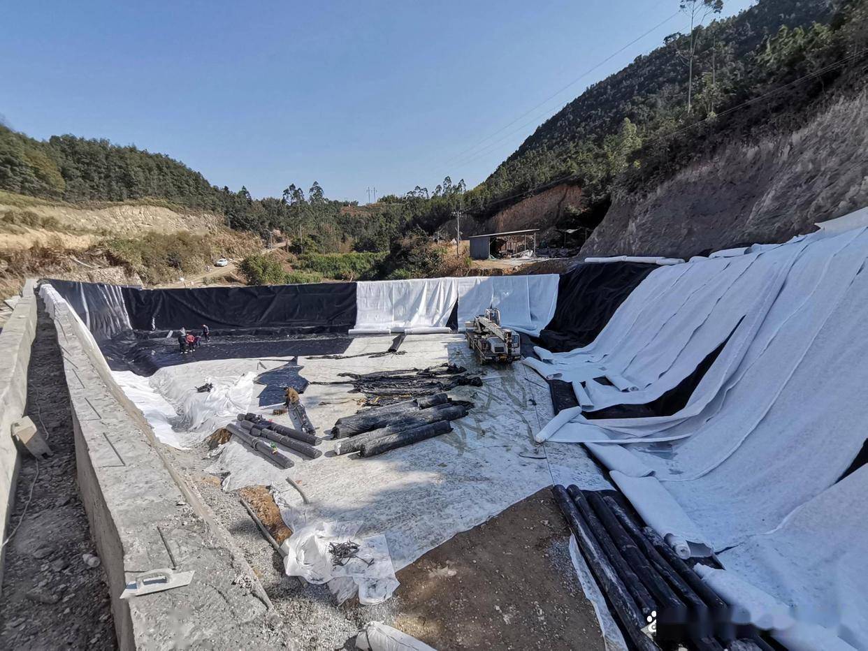 (3)铺设防渗膜:在天气温和时进行铺设,将膜展开平铺在保护层上,留出足够的边缘余量。尽量减少不必要的褶皱。