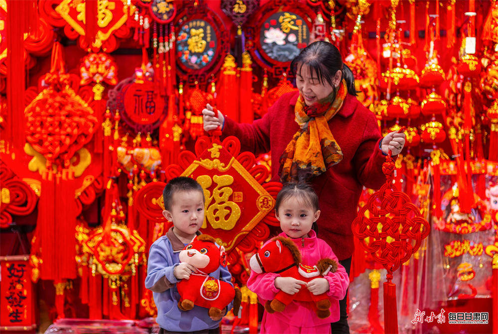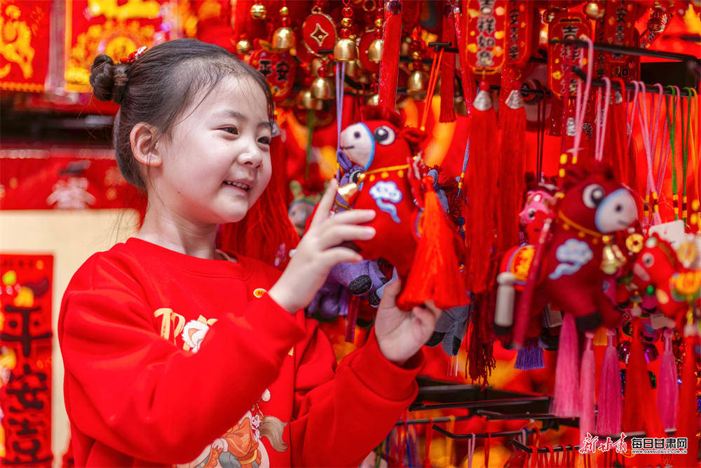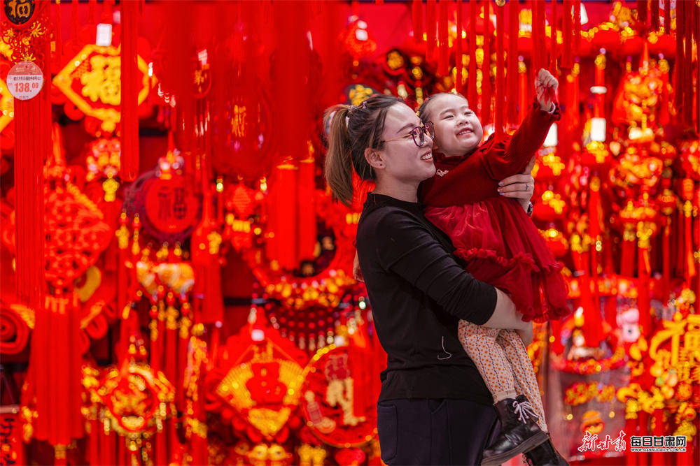 1月29日,张掖市甘州区各大商超、市场内年味浓厚,马年玩偶、红灯笼、中国结等新春饰品琳琅满目,市民纷纷选购,节前饰品销售迎来热潮,节日喜庆氛围愈发浓郁。