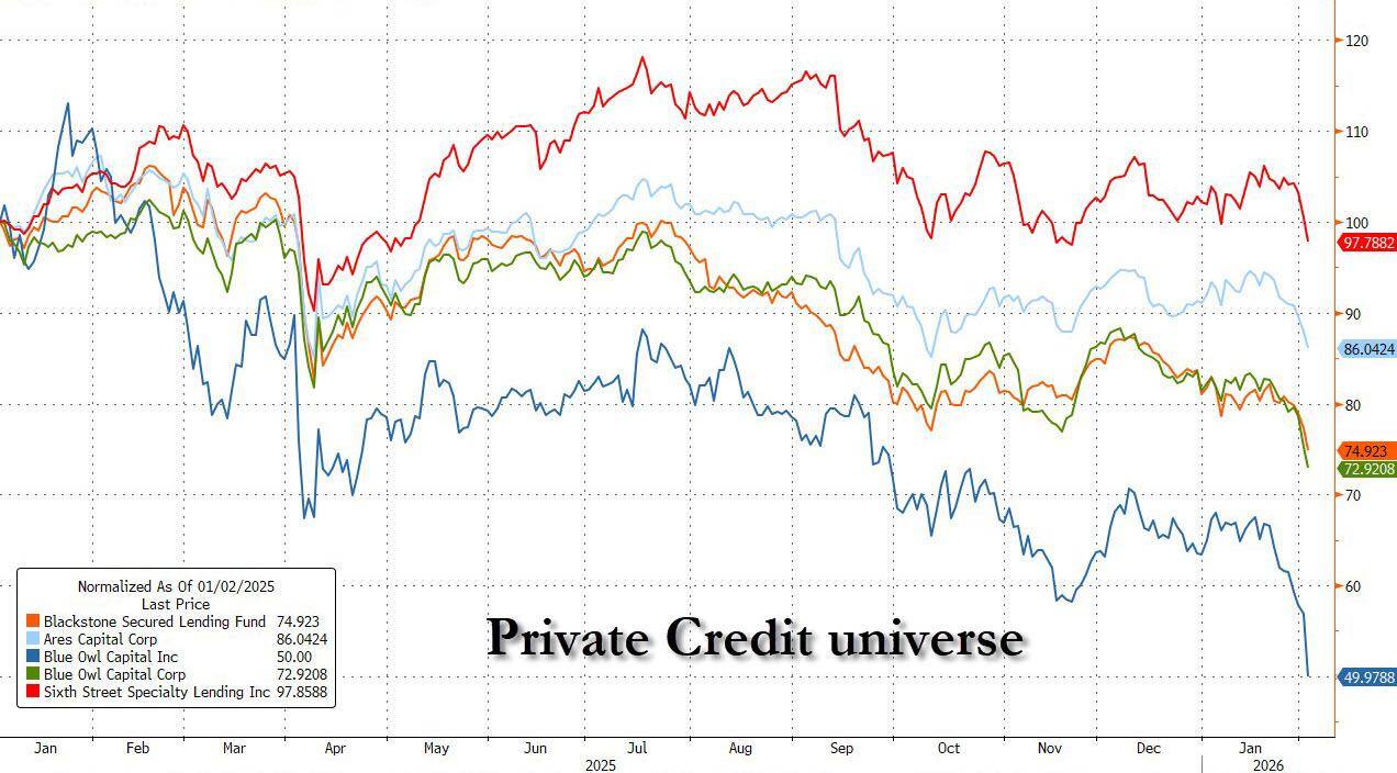 恐慌情绪还蔓延至软件业务开发公司(BDC),包括Blue Owl Capital Corp.在内的BDC股票走低,因市场对这类持有大量软件行业敞口的公司担忧加剧。媒体指出,此类行业动荡的担忧已在全球范围内引发信贷市场震荡,导致上周广泛参与软件公司银团贷款市场的贷款价格下跌。