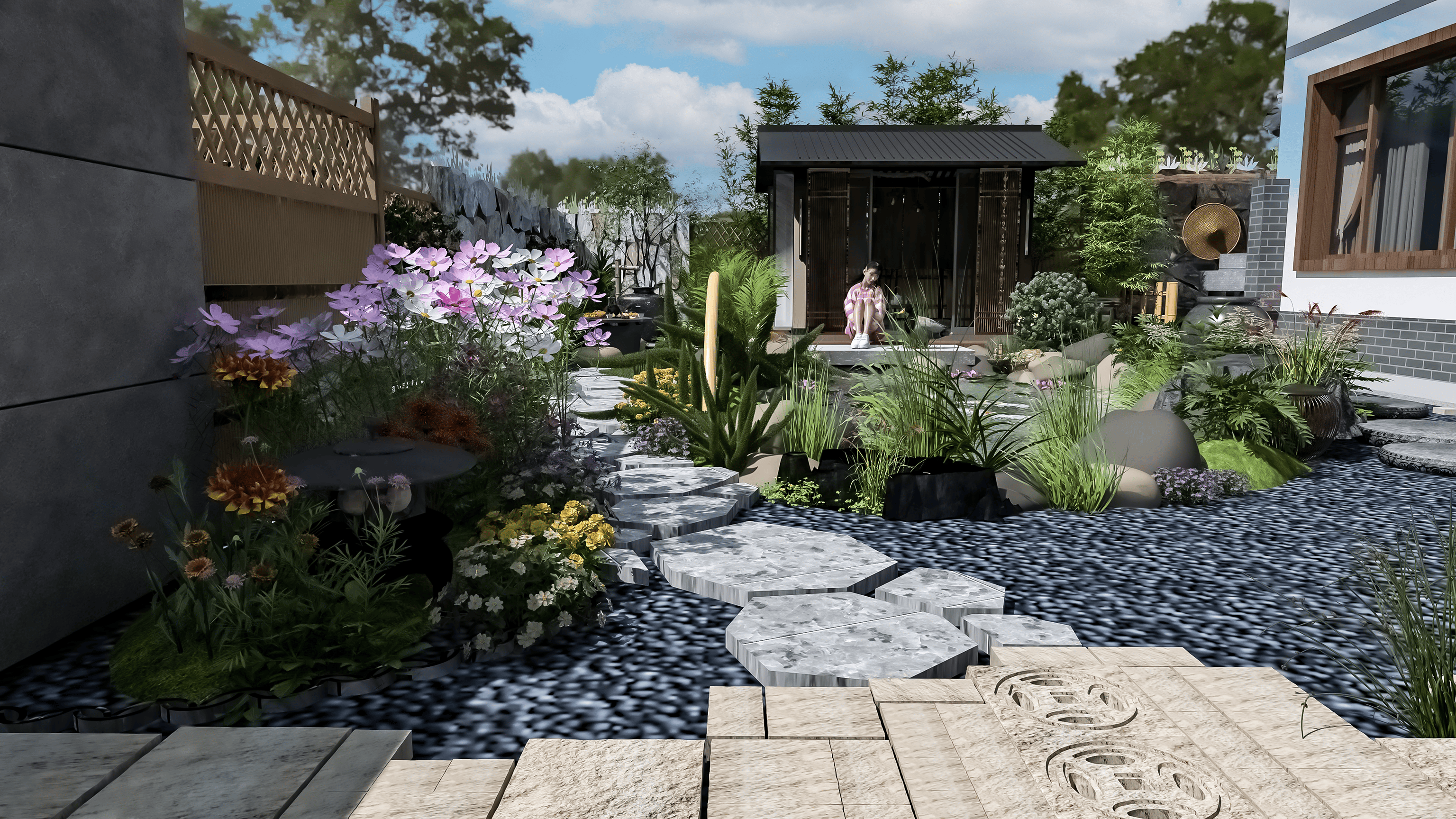 下面给大家分享几个不同面积的轻中式庭院案例,都是我用图布斯3D花园云设计平台设计、然后落地的实景效果,附上详细的设计要点拆解,大家可以直接参考、大胆抄作业,保证不踩坑、不翻车!