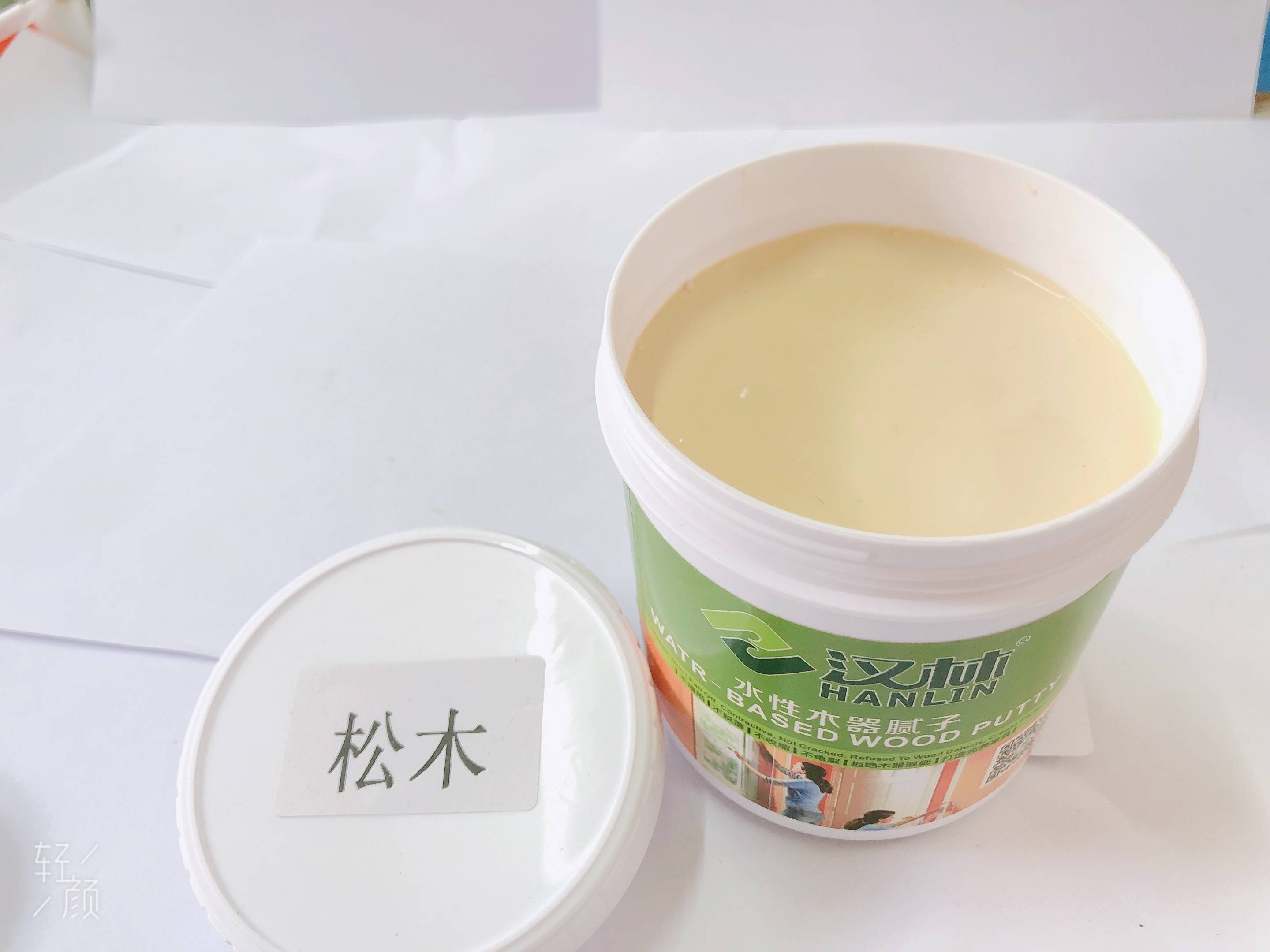 更关键的是,该腻子干燥后几乎无收缩。传统腻子干燥收缩率约3%-5%,补完的坑洞会出现“微凹陷”,而汉林水性腻子收缩率低于0.5%,填补后与地板表面保持平整,打磨后无需二次补涂,从源头减少了“打磨不均导致的漆层厚薄差”。