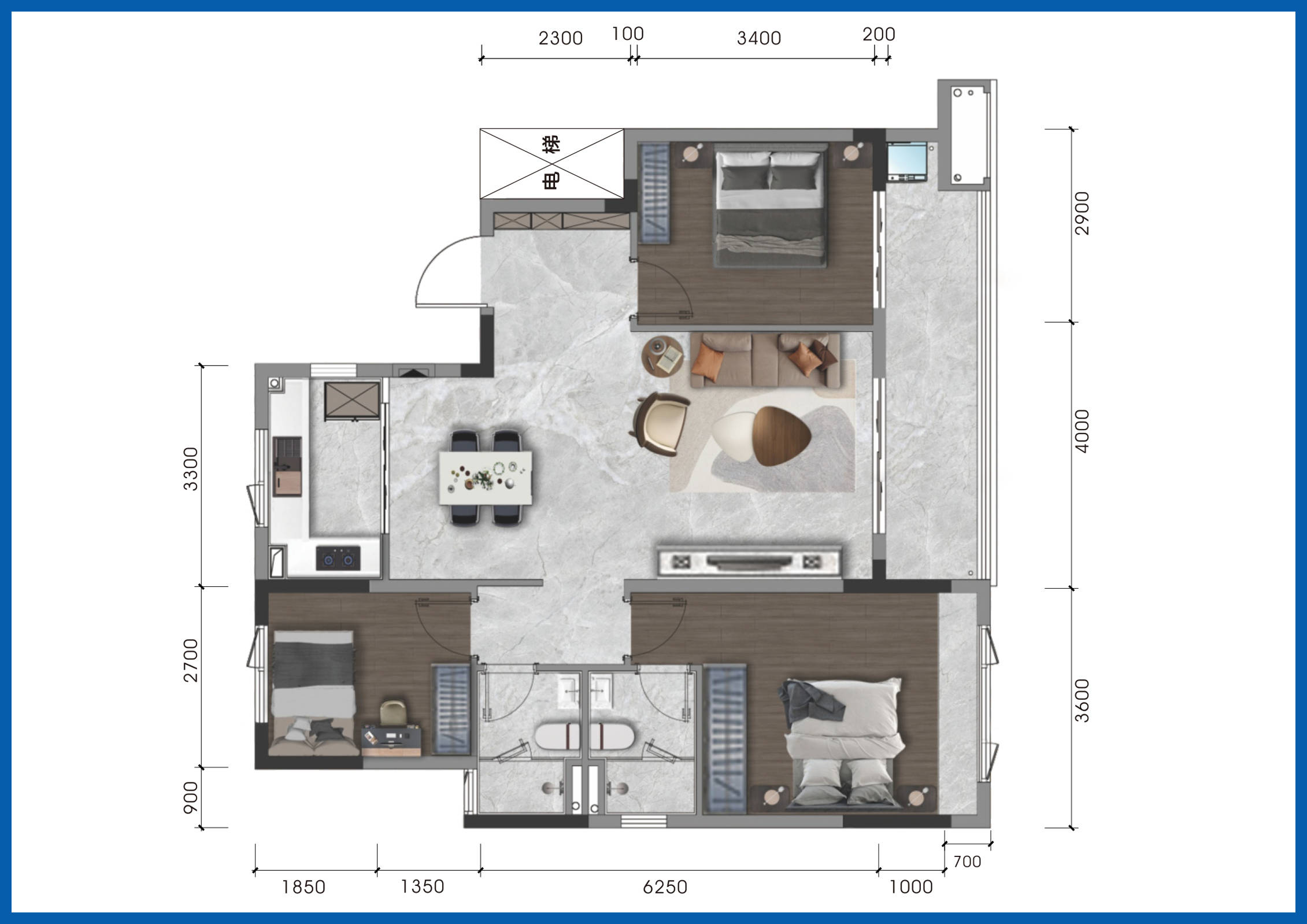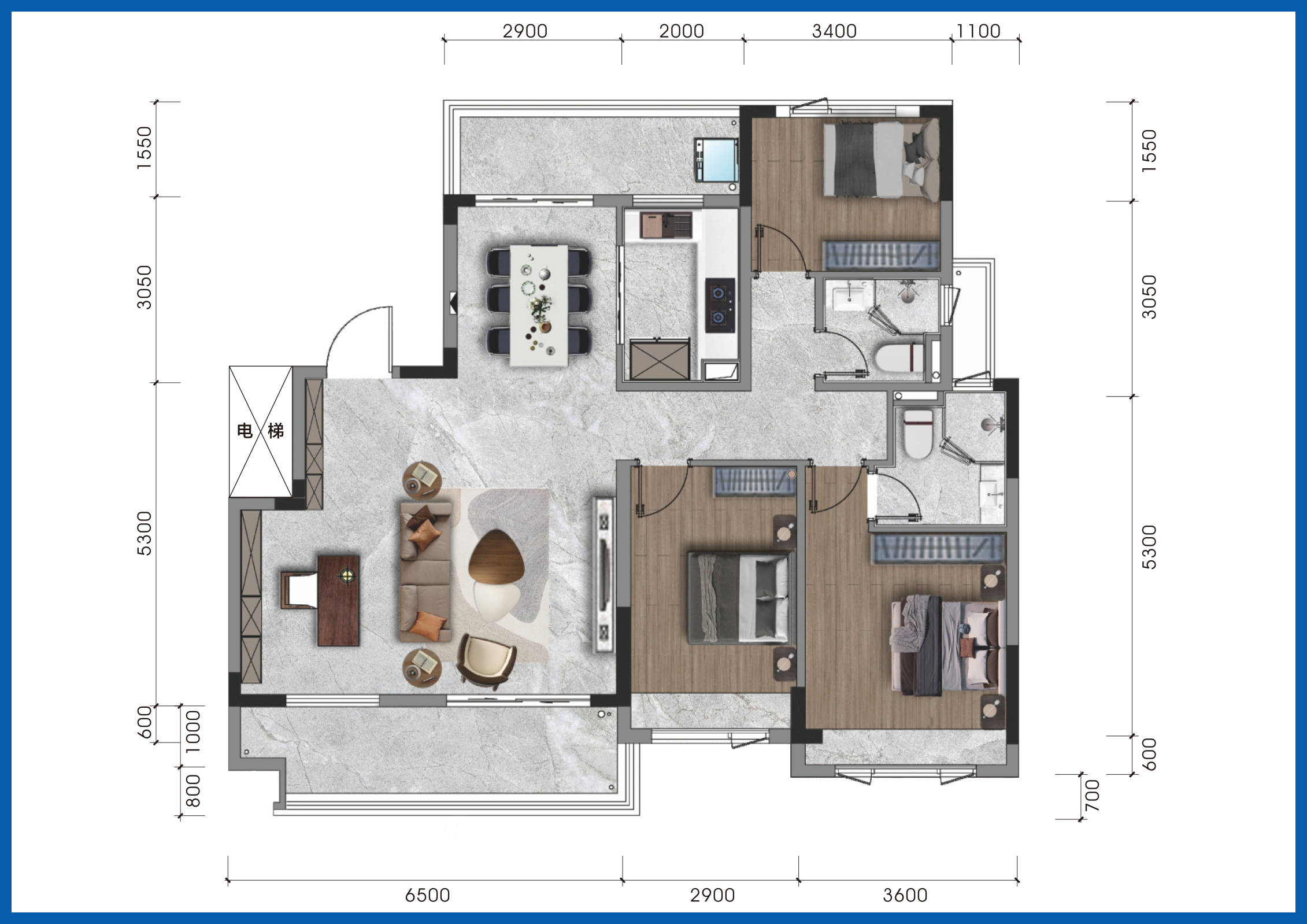 ?业态分布:12栋6层纯板式真洋房+1栋商业综合体约1.2万㎡