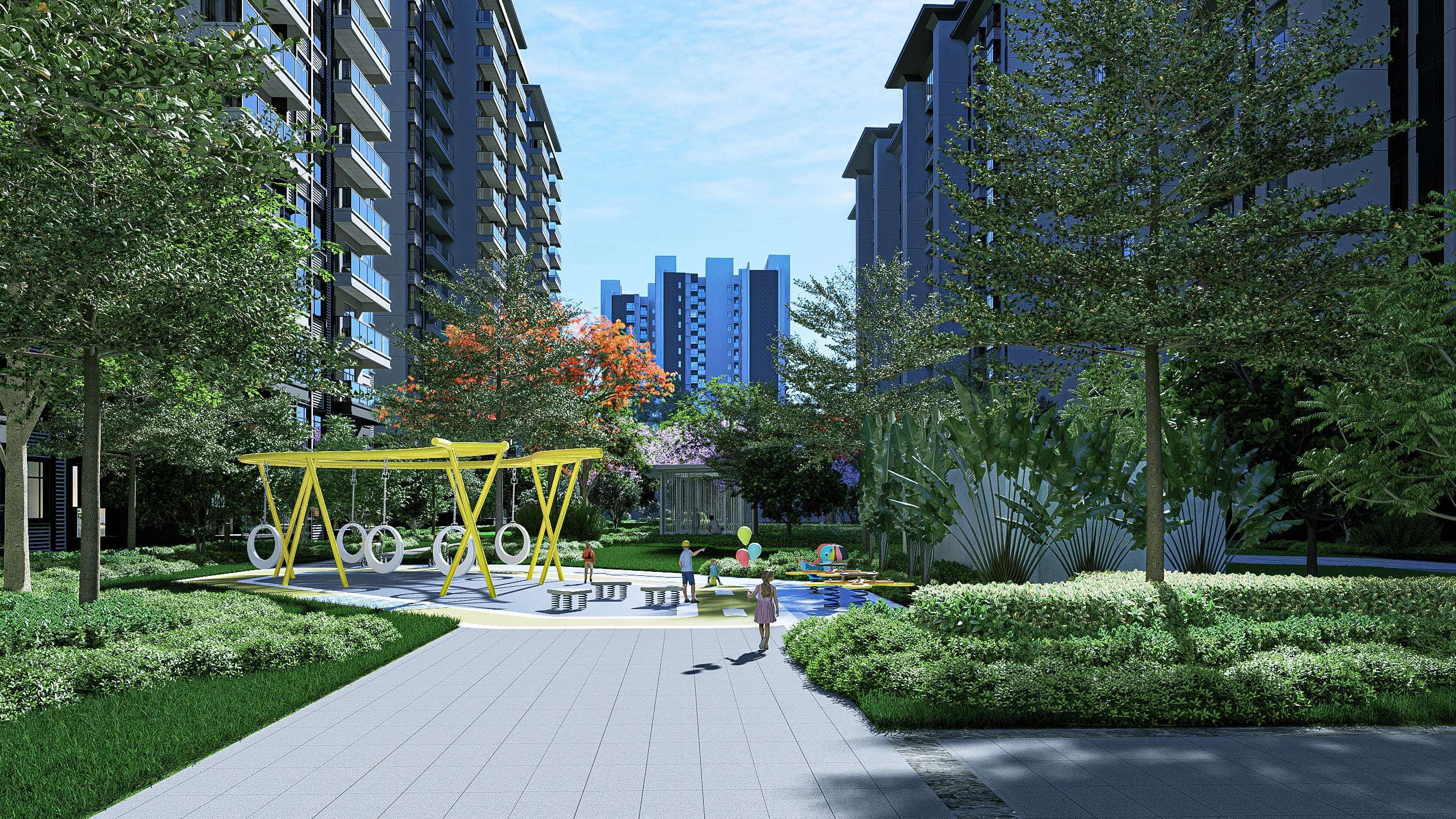 ◎ 中轴景观:名贵绿植贯穿社区,推窗见绿色,漫步享清凉