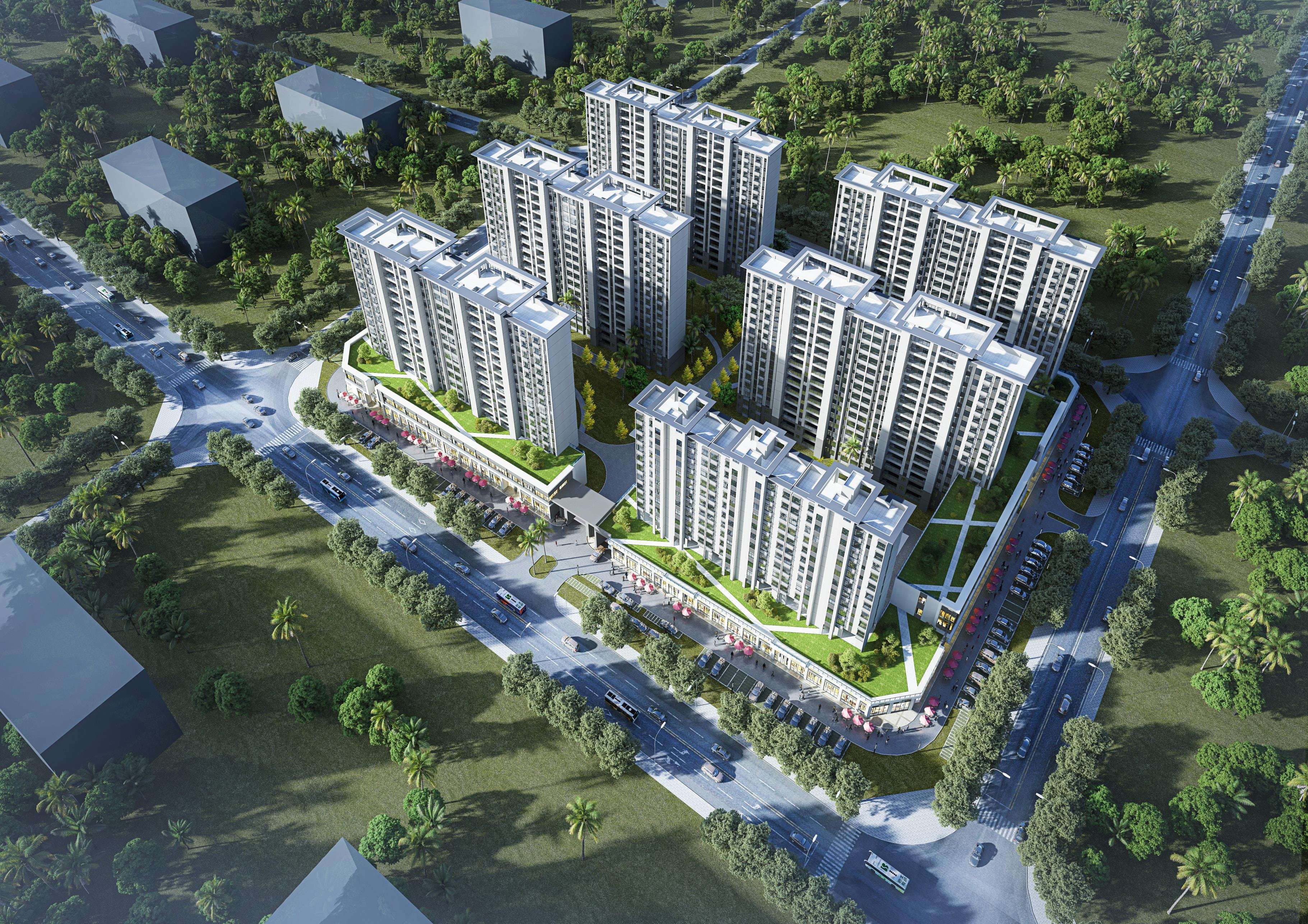 外立面融合真石漆、高级涂料及玻璃阳台,以简约大气的线条,塑就现代建筑的艺术质感。