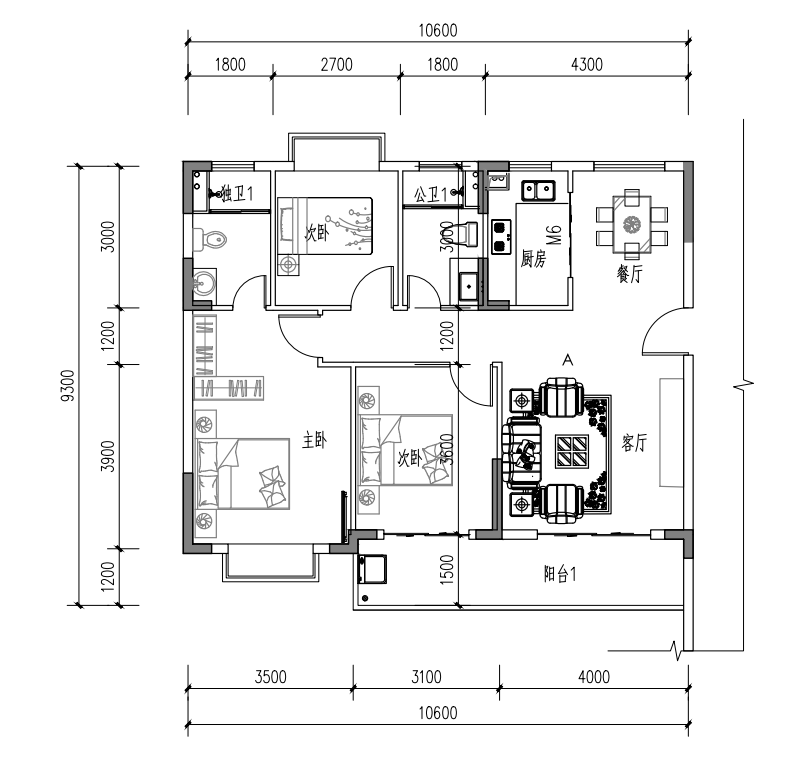 【标准层高】:3米